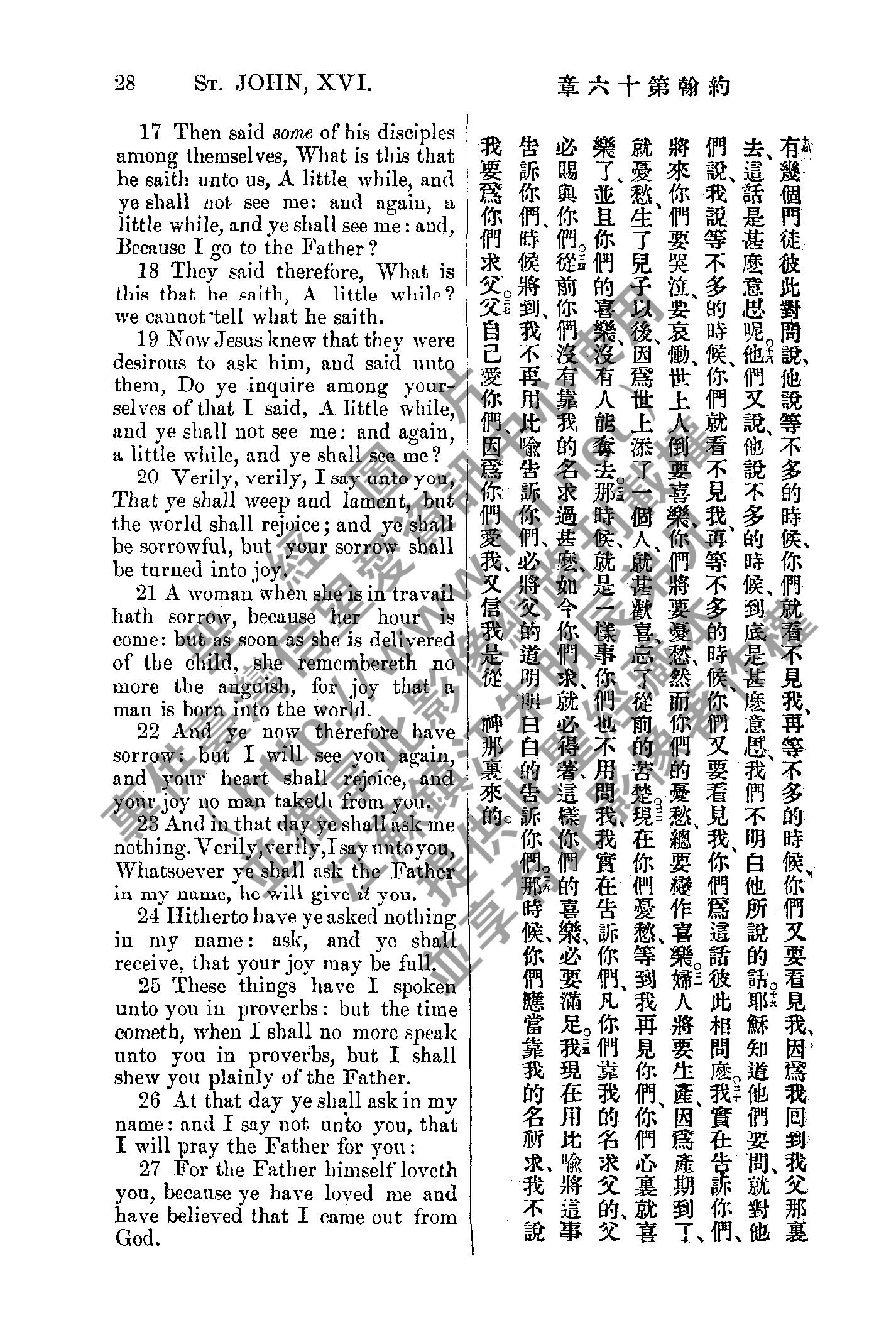1885年新約全書 約翰福音 16 章 17 節到 16 章 27 節
