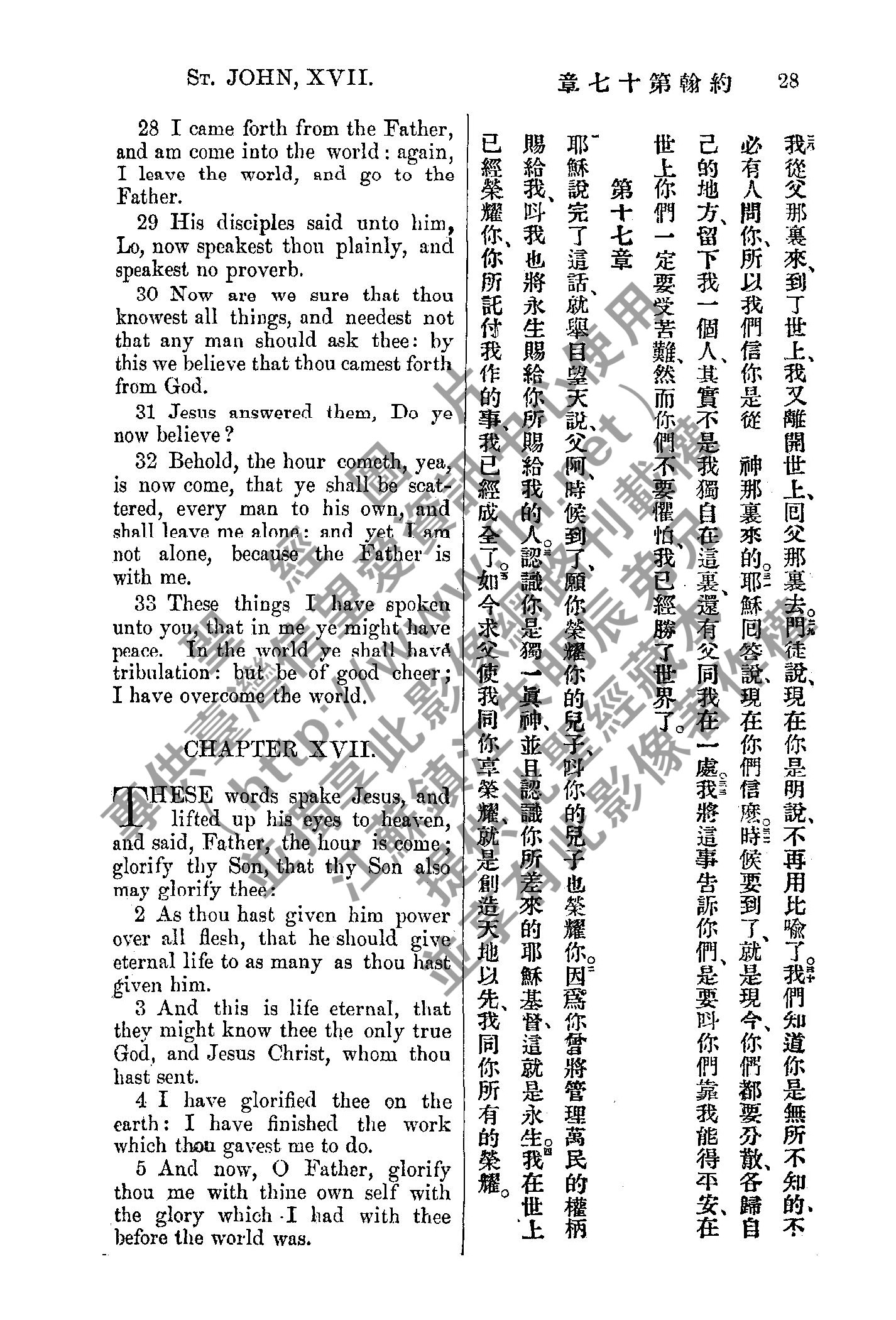 1885年新約全書 約翰福音 16 章 28 節到 17 章 5 節
