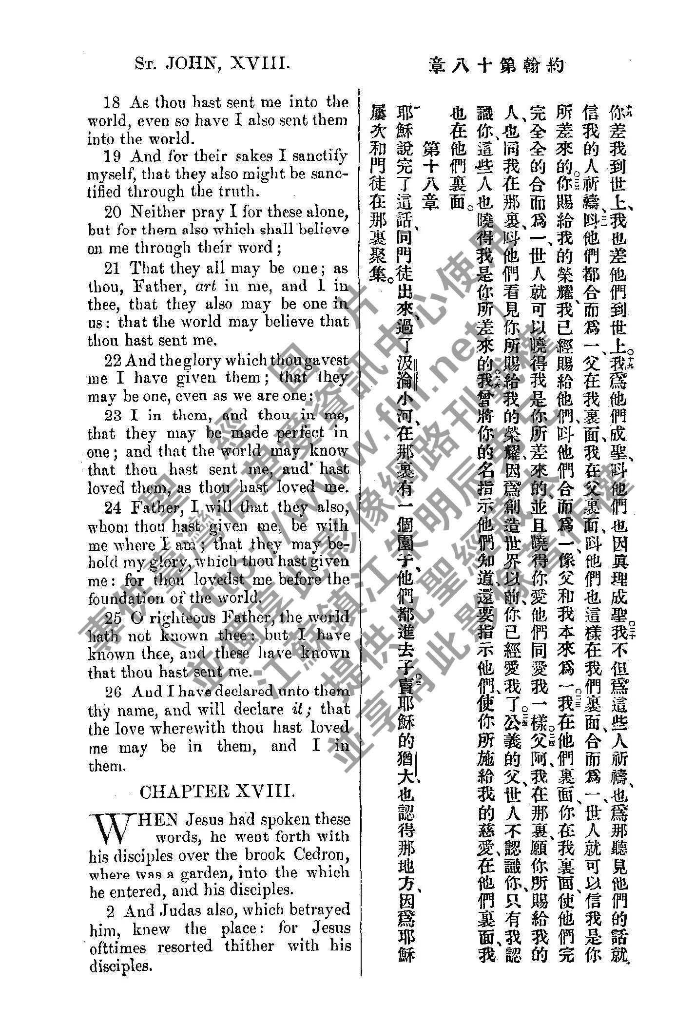 1885年新約全書 約翰福音 17 章 18 節到 18 章 2 節