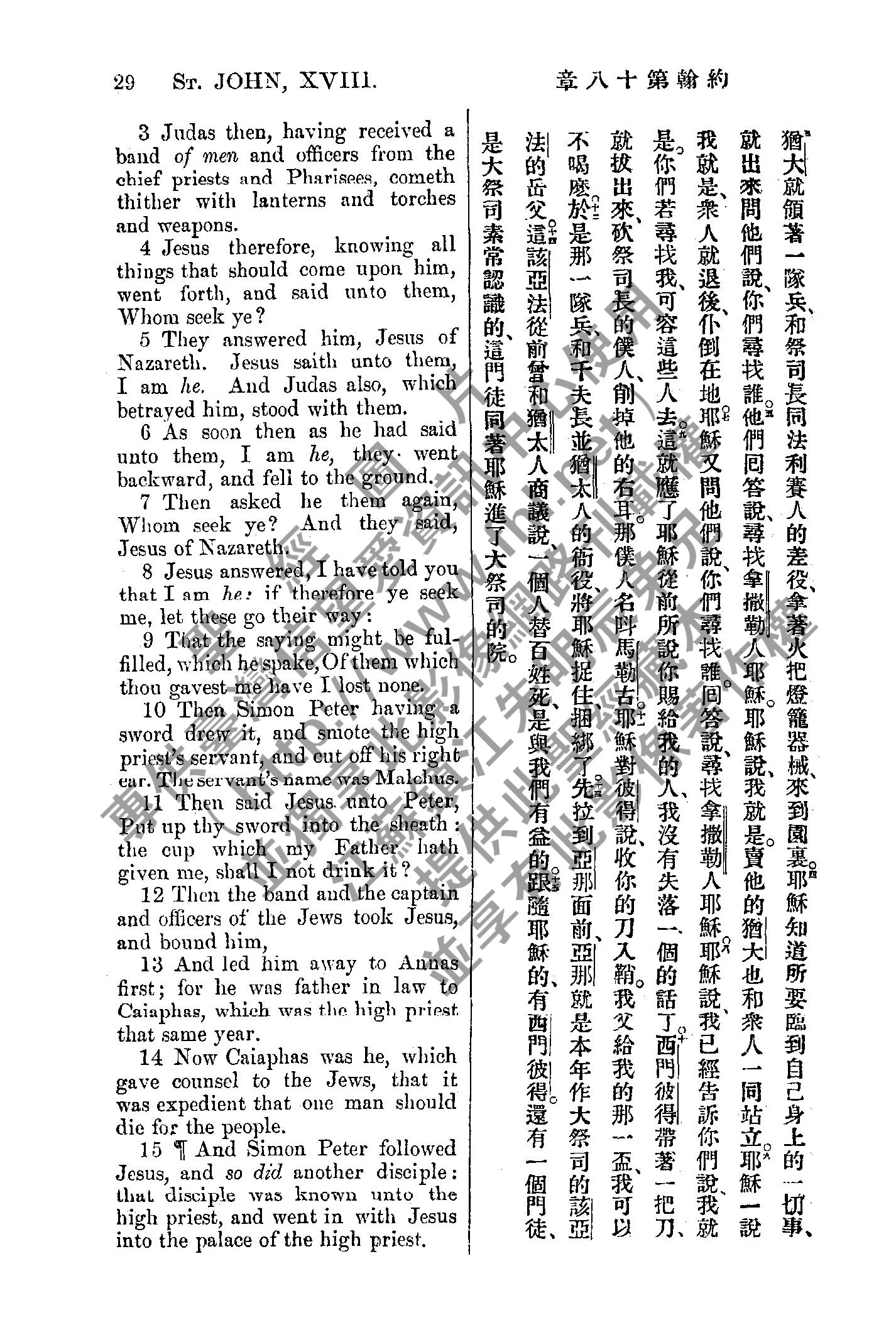 1885年新約全書 約翰福音 18 章 3 節到 18 章 15 節