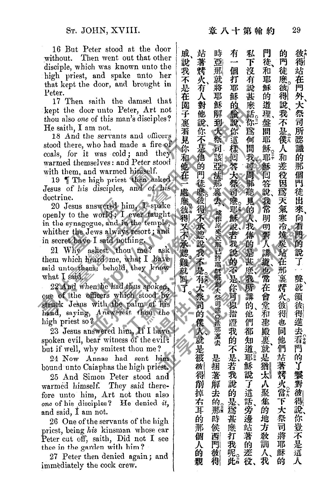 1885年新約全書 約翰福音 18 章 16 節到 18 章 27 節