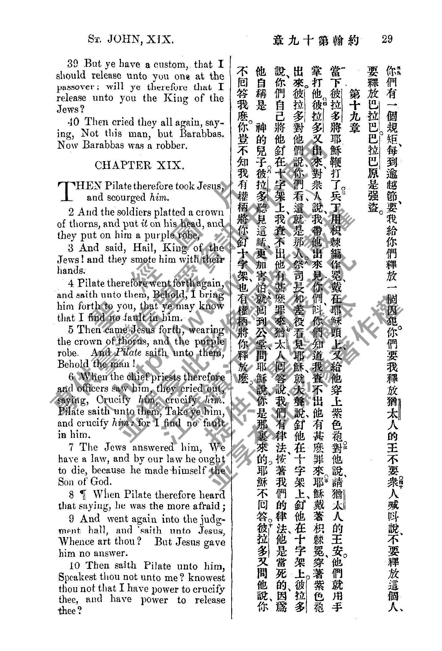 1885年新約全書 約翰福音 18 章 39 節到 19 章 10 節