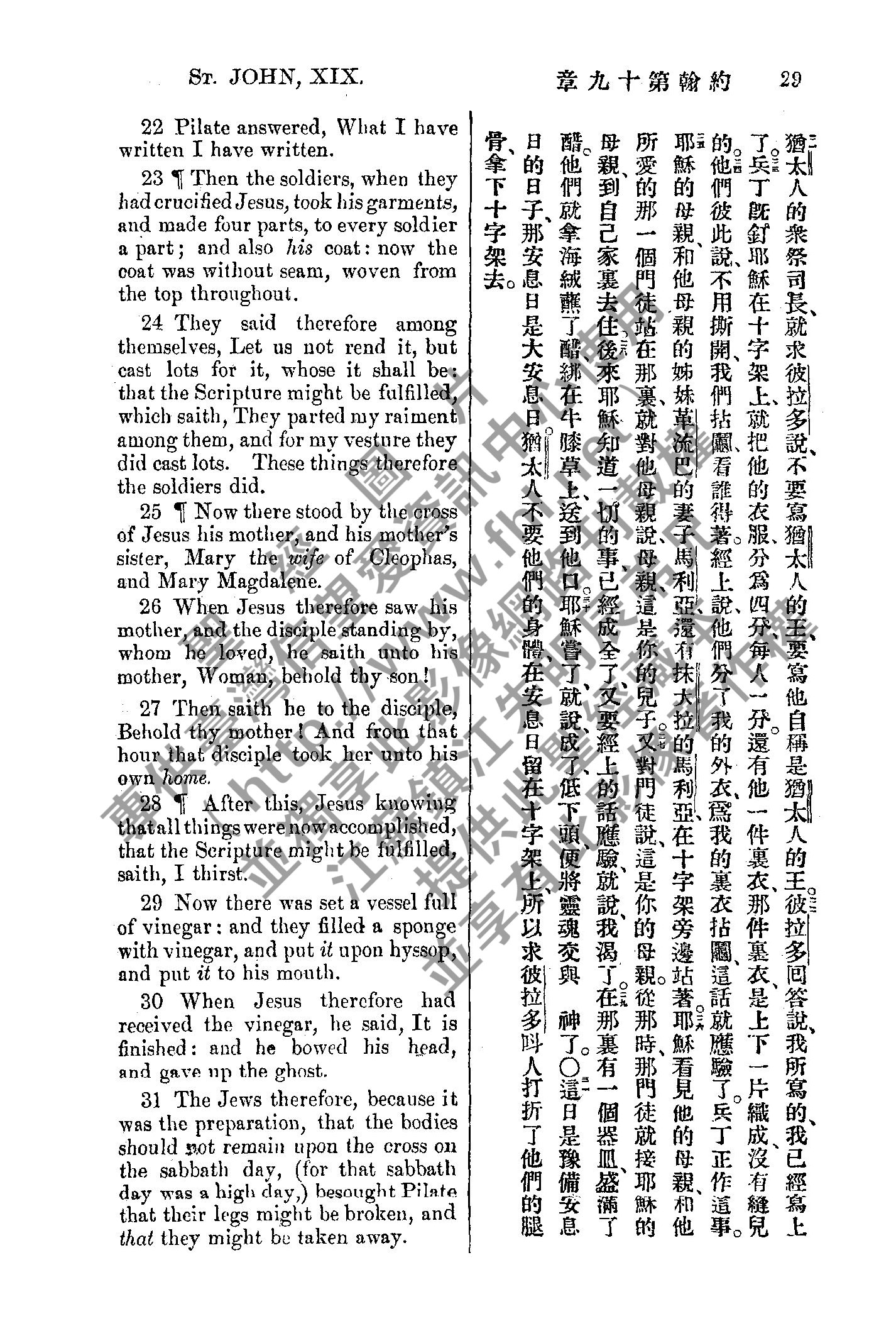 1885年新約全書 約翰福音 19 章 21 節到 19 章 31 節