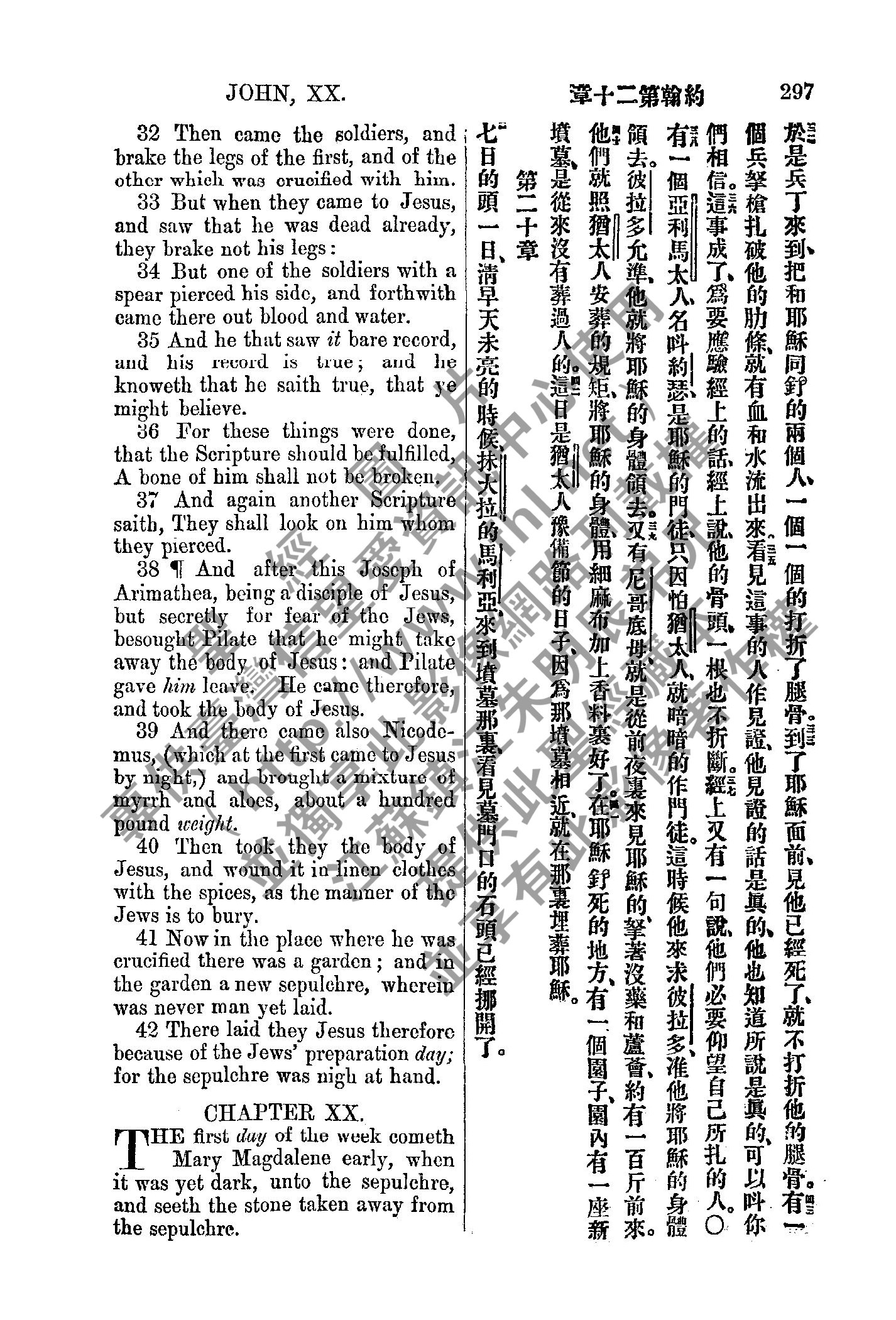 1885年新約全書 約翰福音 19 章 32 節到 20 章 1 節