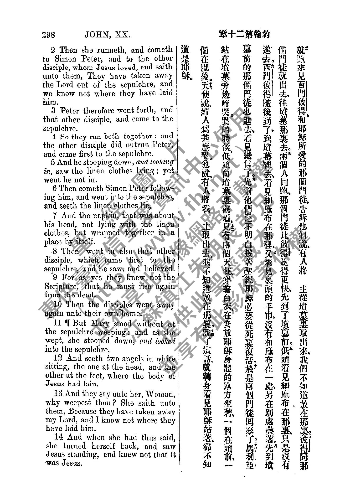 1885年新約全書 約翰福音 20 章 2 節到 20 章 14 節
