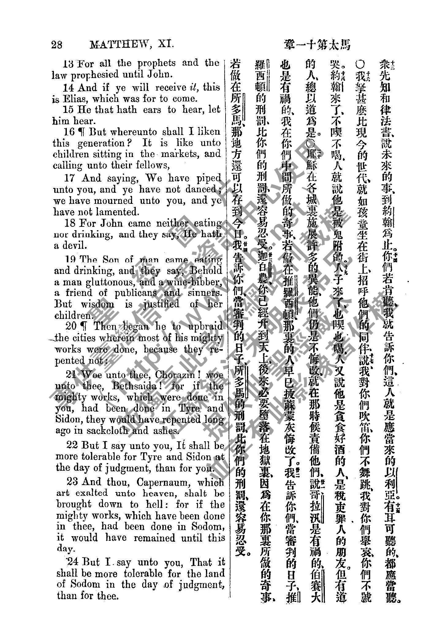 1885年新約全書 馬太福音 11 章 13 節到 11 章 24 節