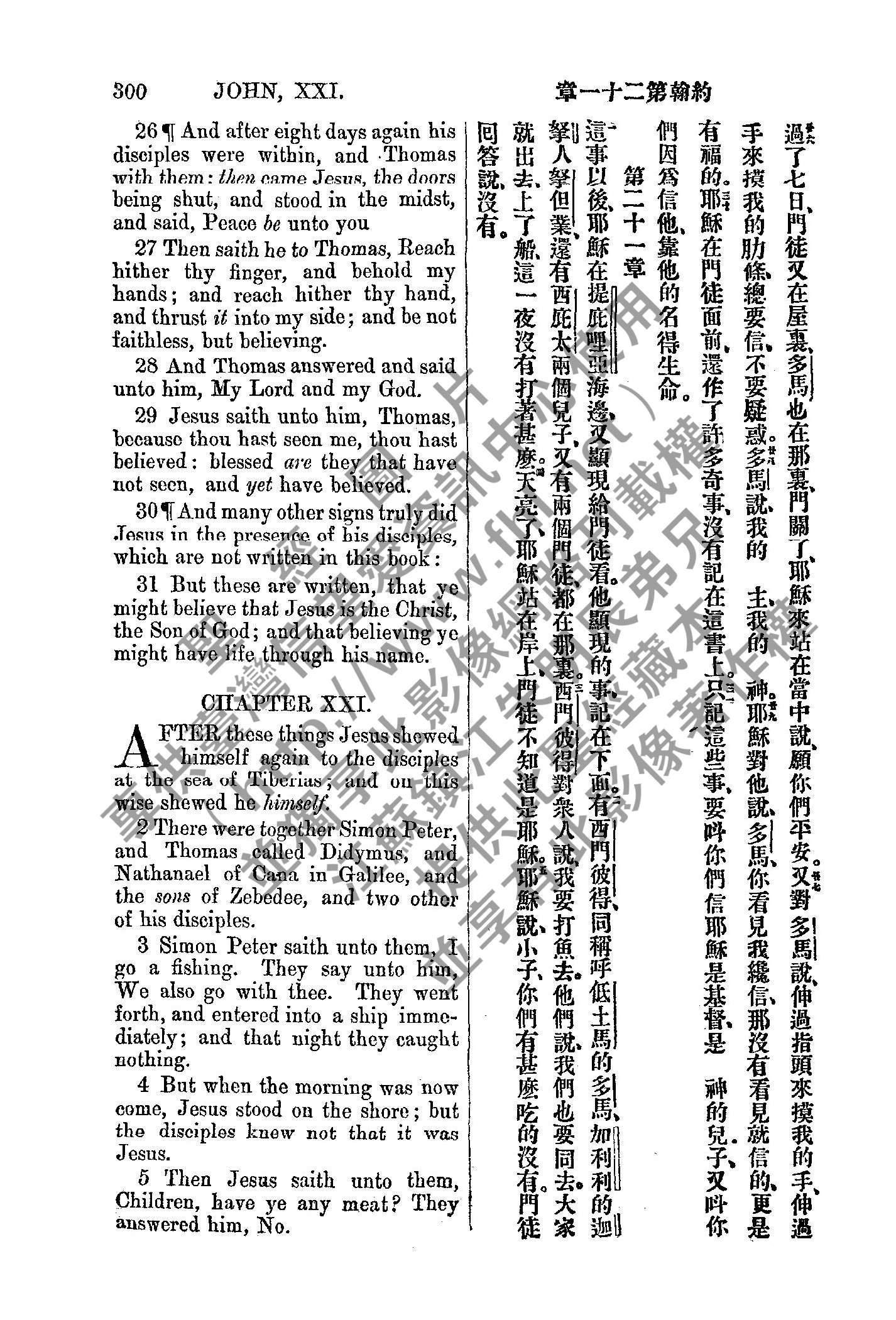 1885年新約全書 約翰福音 20 章 26 節到 21 章 5 節