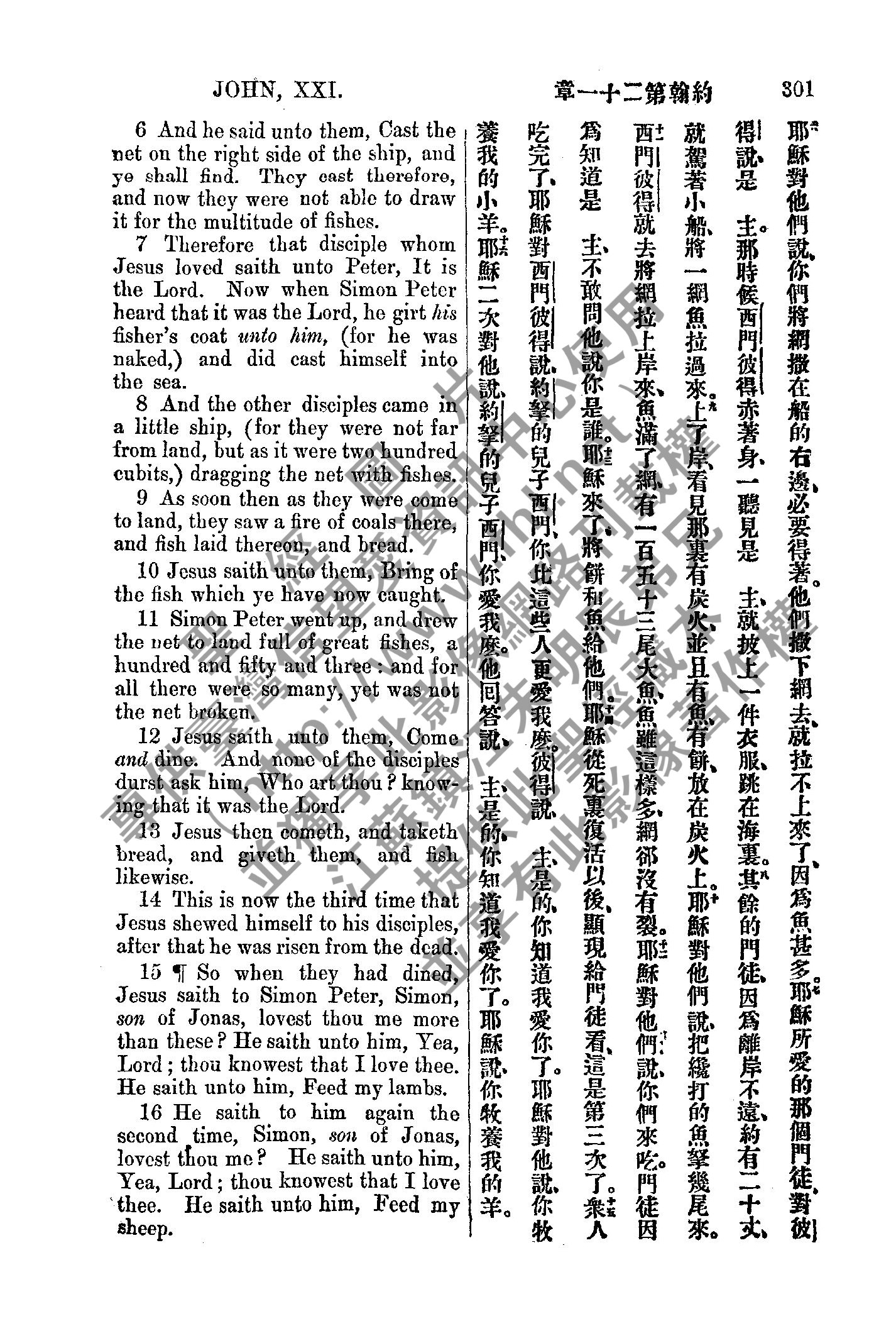 1885年新約全書 約翰福音 21 章 6 節到 21 章 16 節