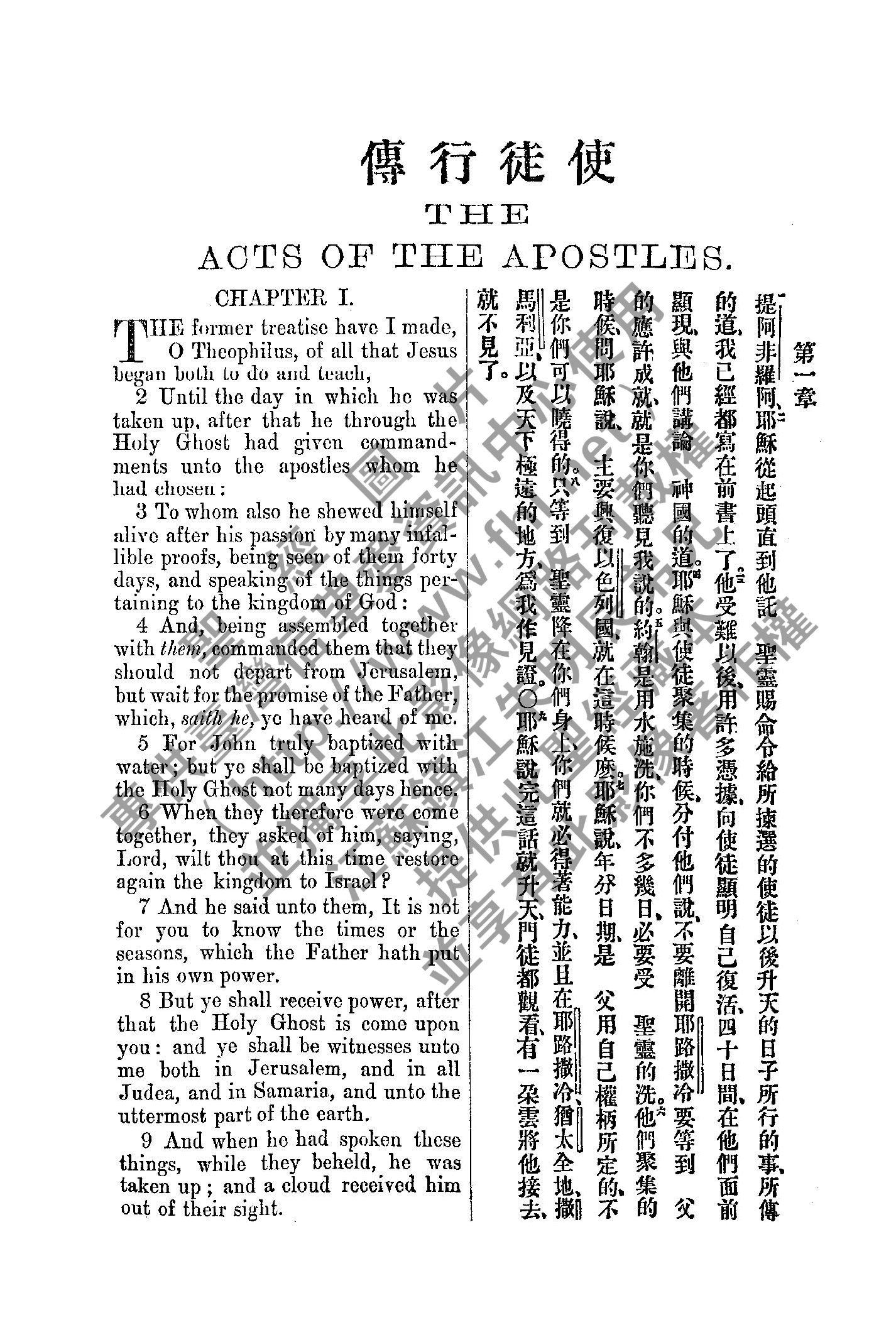 1885年新約全書 使徒行傳 1 章 1 節到 1 章 9 節