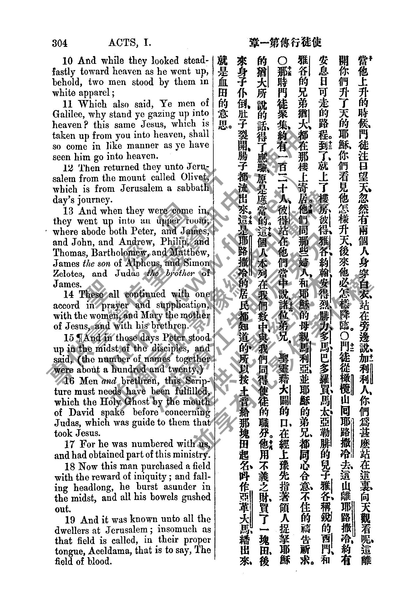 1885年新約全書 使徒行傳 1 章 10 節到 1 章 19 節