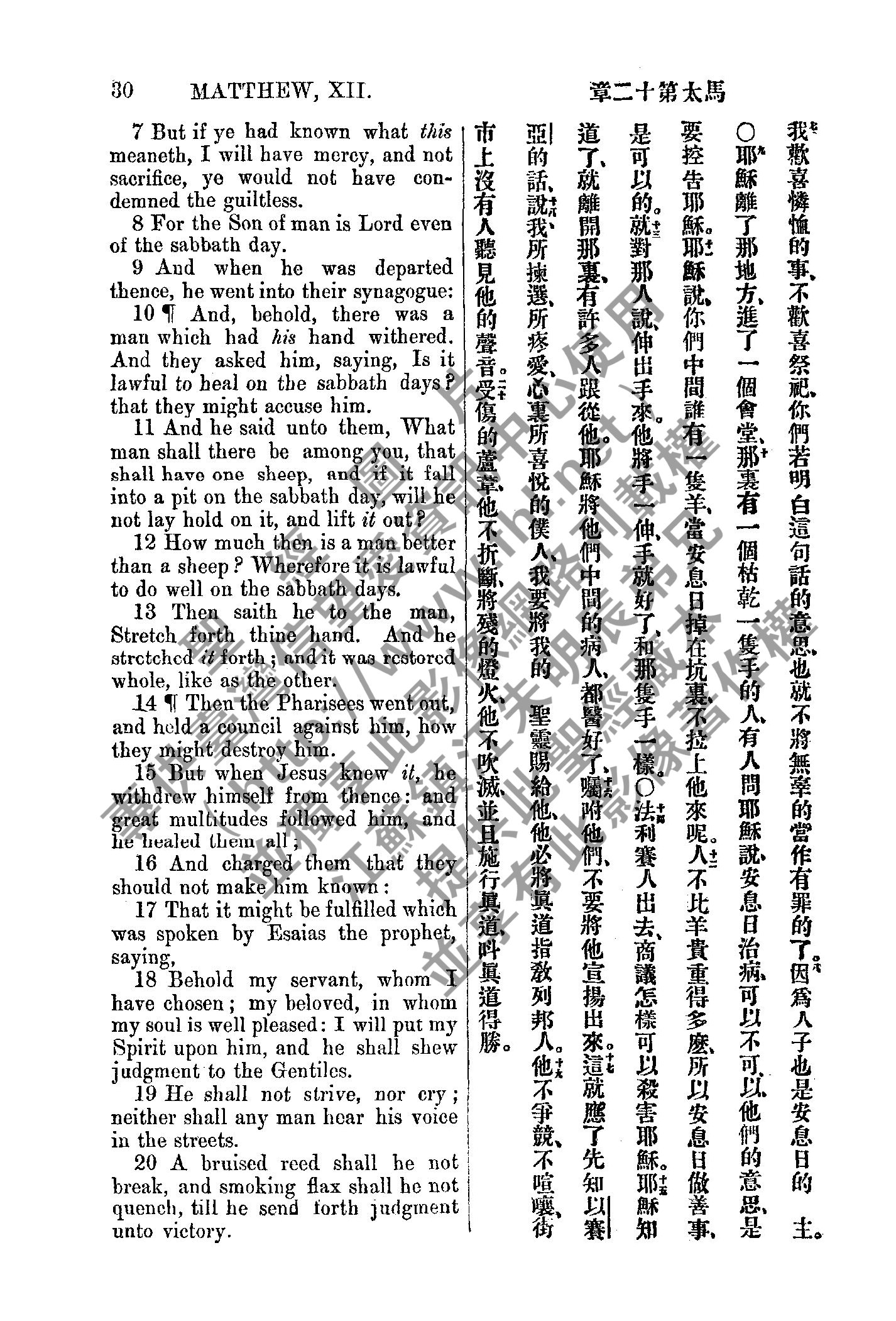 1885年新約全書 馬太福音 12 章 7 節到 12 章 20 節