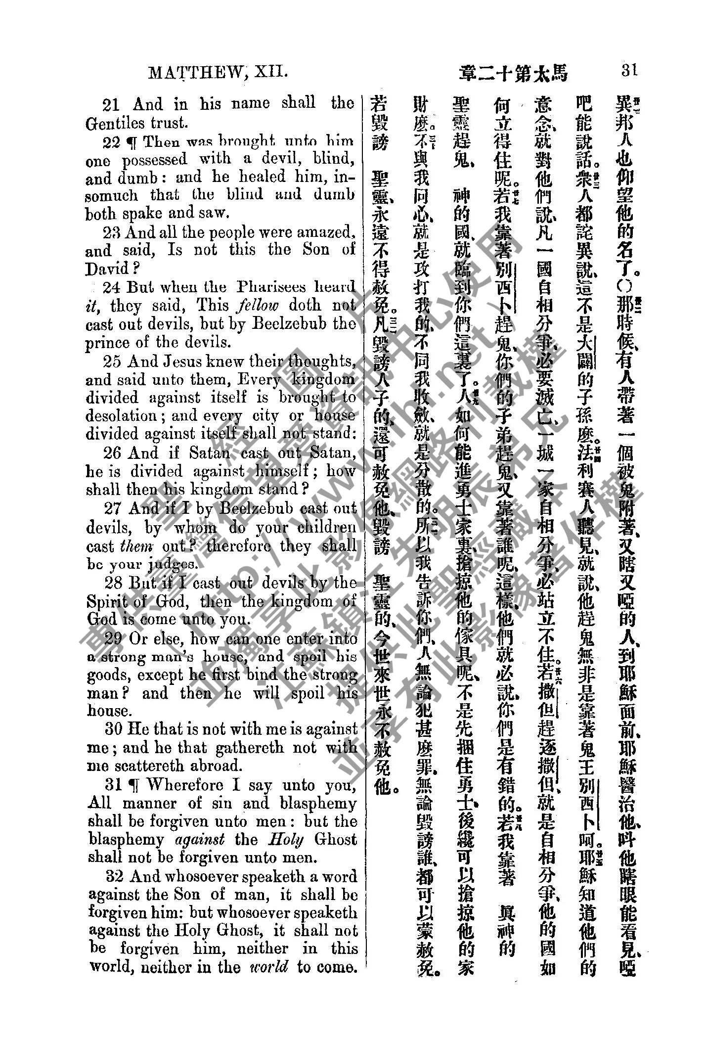 1885年新約全書 馬太福音 12 章 21 節到 12 章 32 節