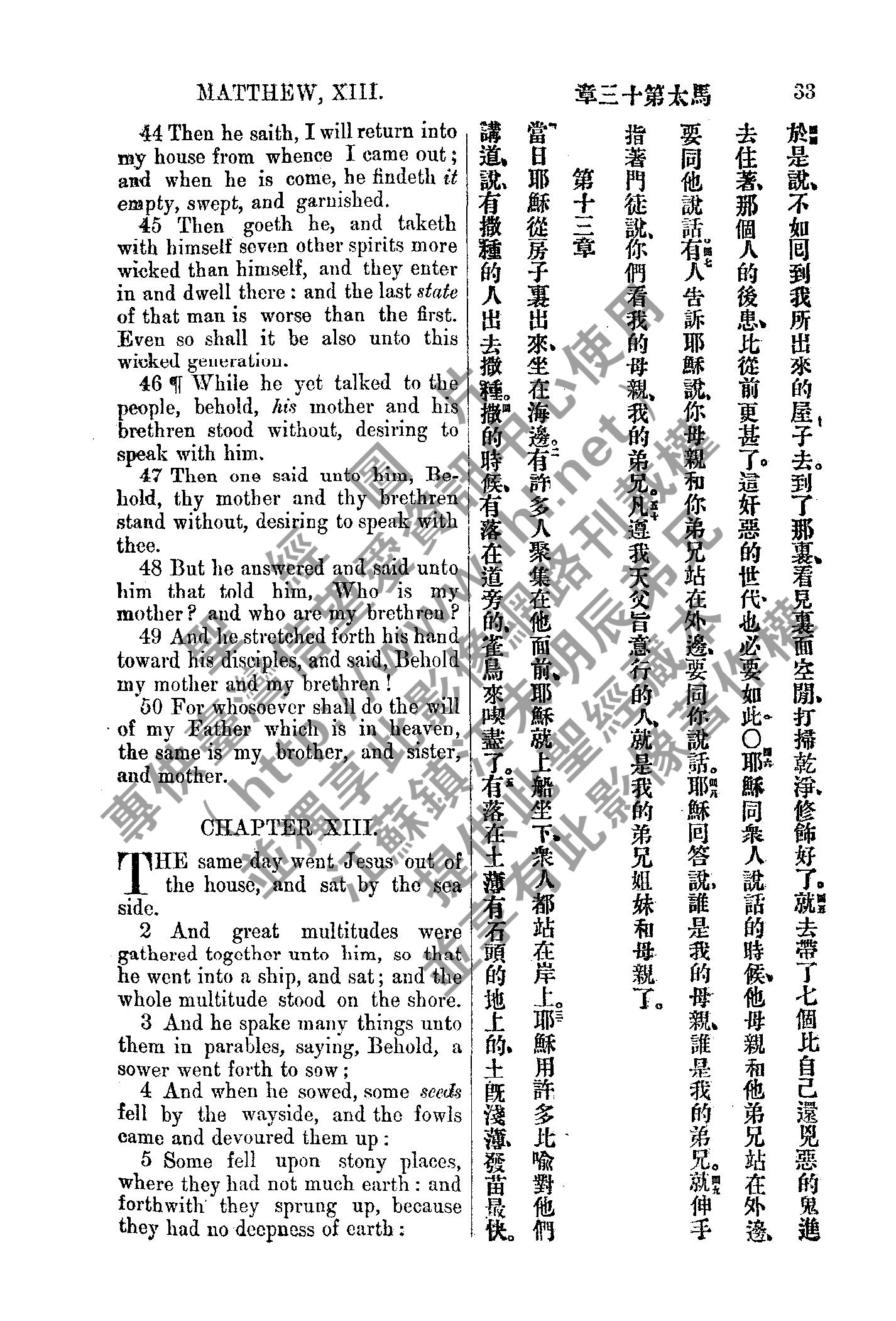 1885年新約全書 馬太福音 12 章 44 節到 13 章 5 節