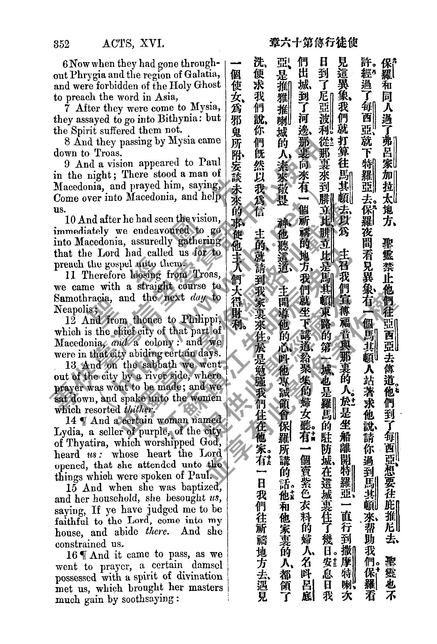 1885年新約全書 使徒行傳 16 章 6 節到 16 章 16 節