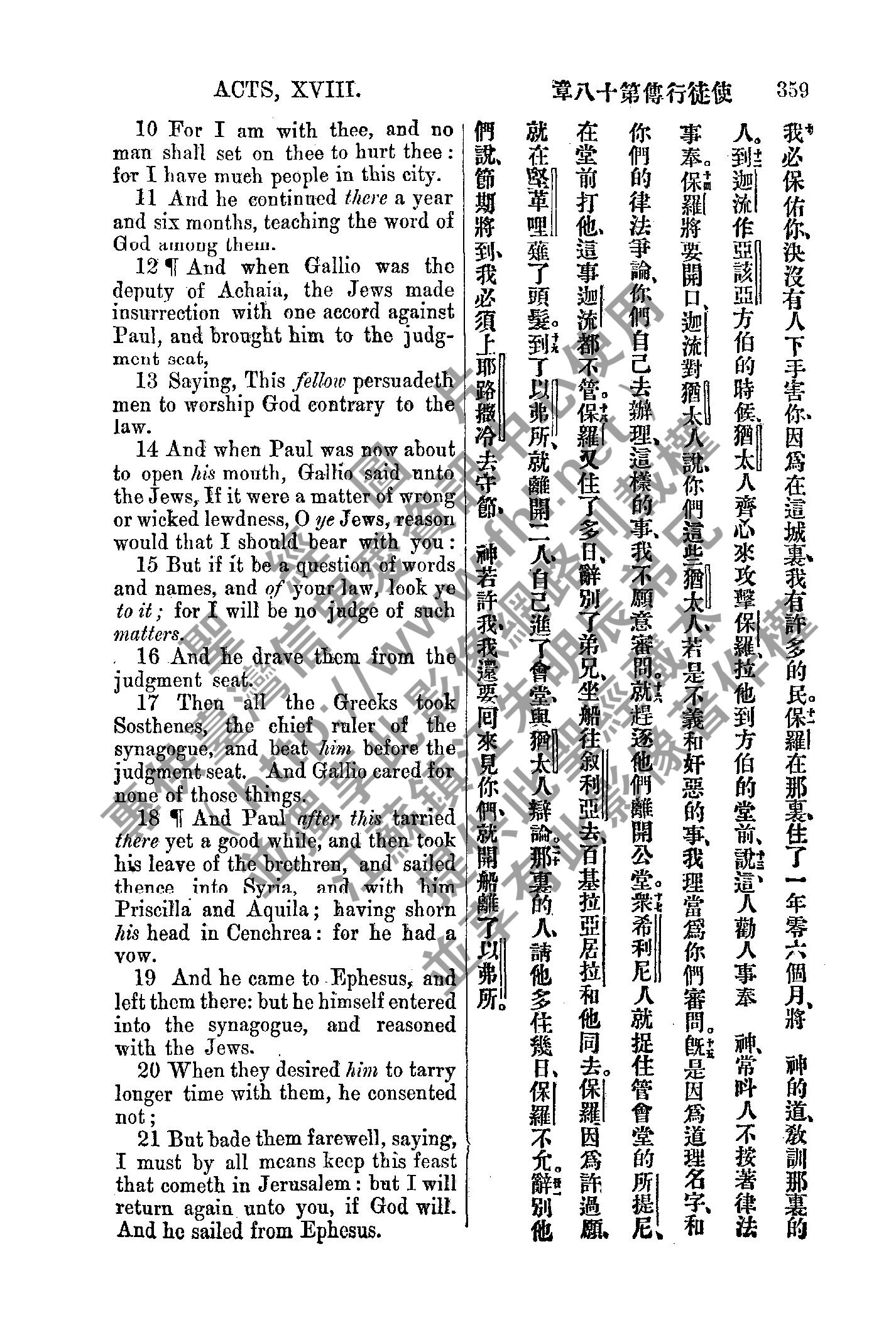1885年新約全書 使徒行傳 18 章 10 節到 18 章 21 節