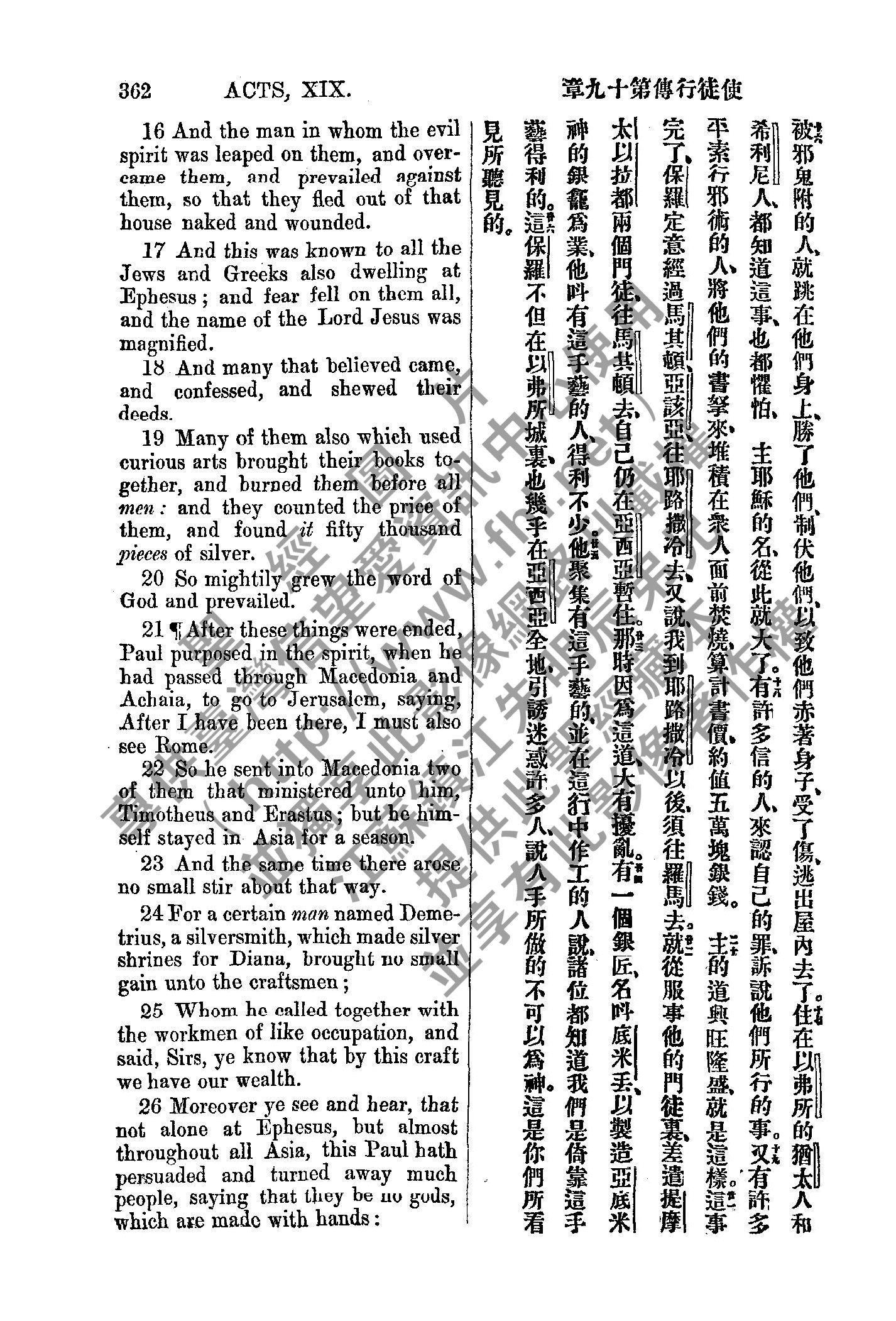 1885年新約全書 使徒行傳 19 章 16 節到 19 章 26 節