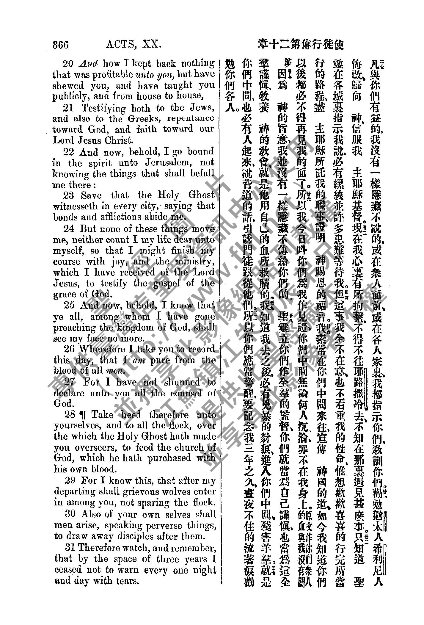 1885年新約全書 使徒行傳 20 章 20 節到 20 章 31 節