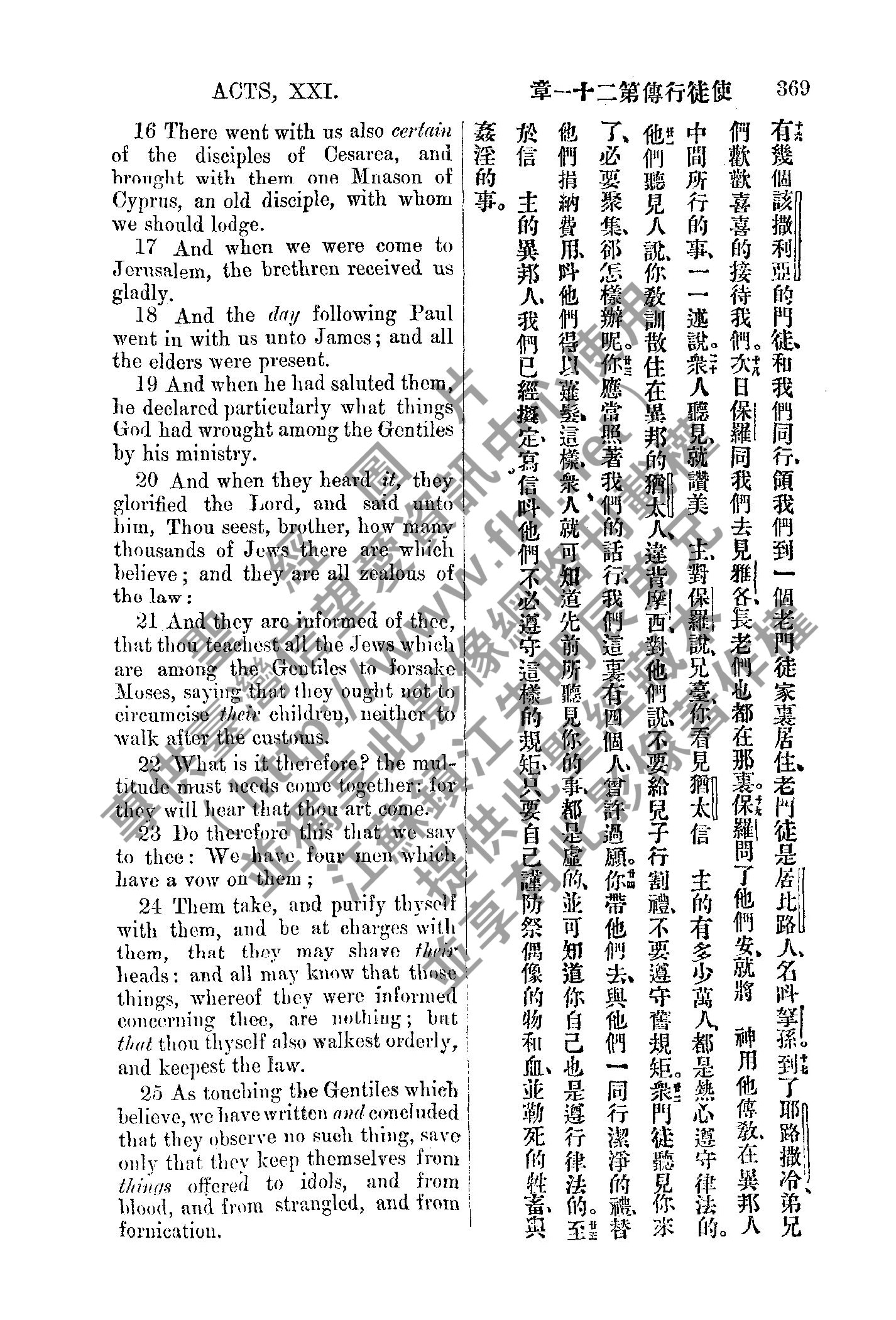 1885年新約全書 使徒行傳 21 章 16 節到 21 章 25 節