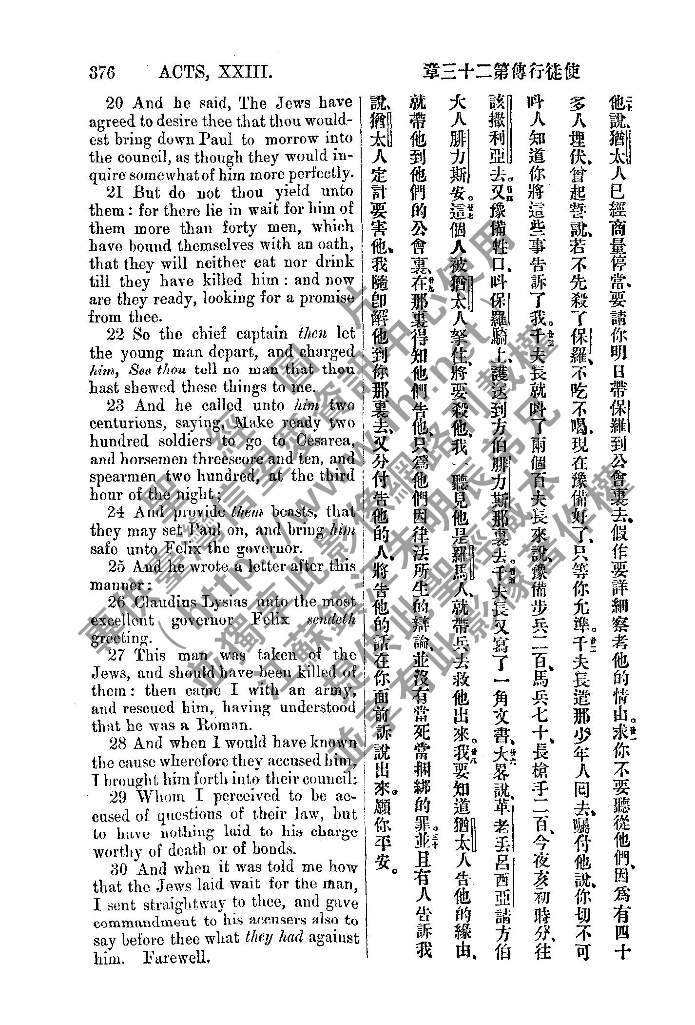 1885年新約全書 使徒行傳 23 章 20 節到 23 章 30 節