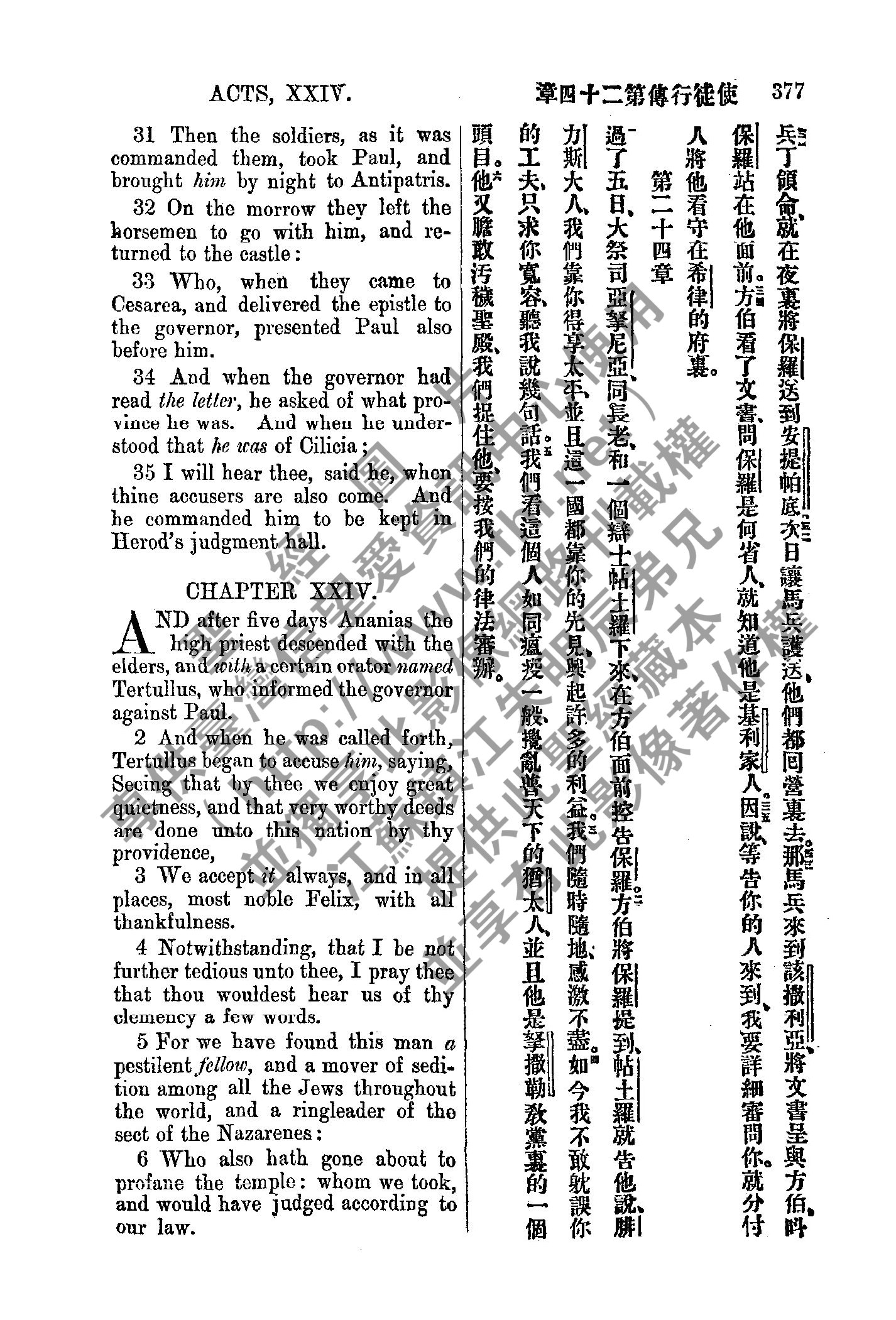 1885年新約全書 使徒行傳 24 章 31 節到 25 章 6 節