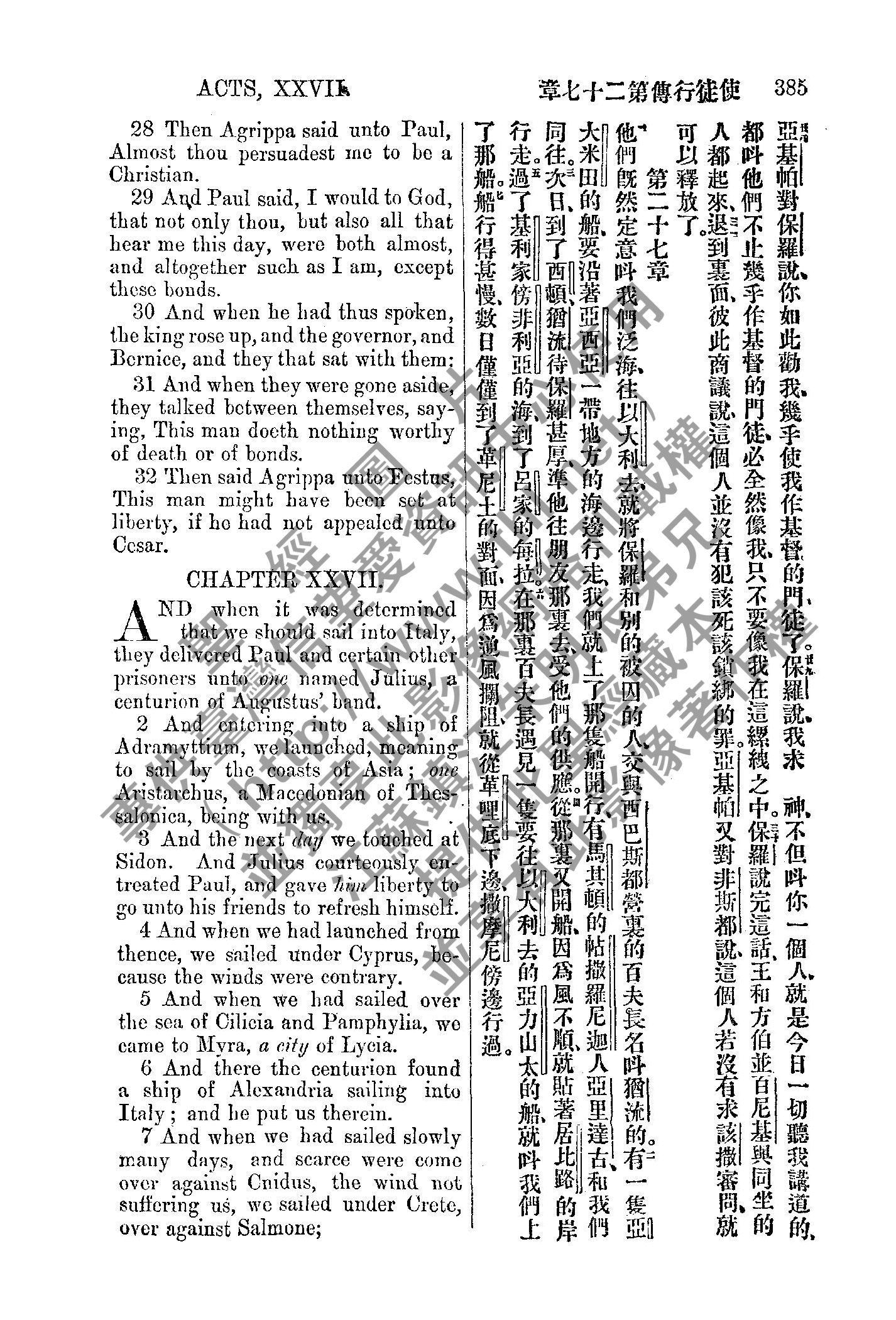 1885年新約全書 使徒行傳 27 章 28 節到 28 章 7 節