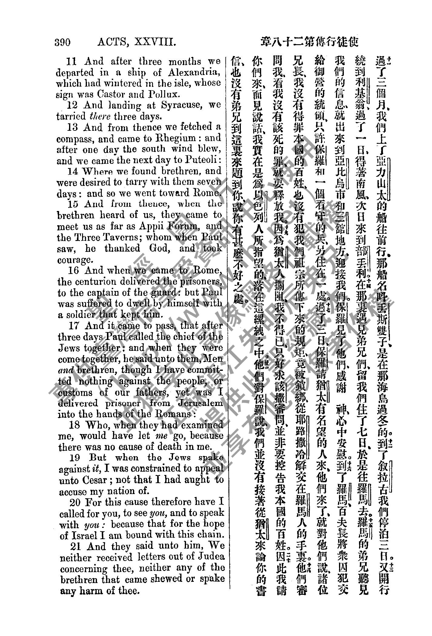 1885年新約全書 使徒行傳 29 章 11 節到 29 章 21 節