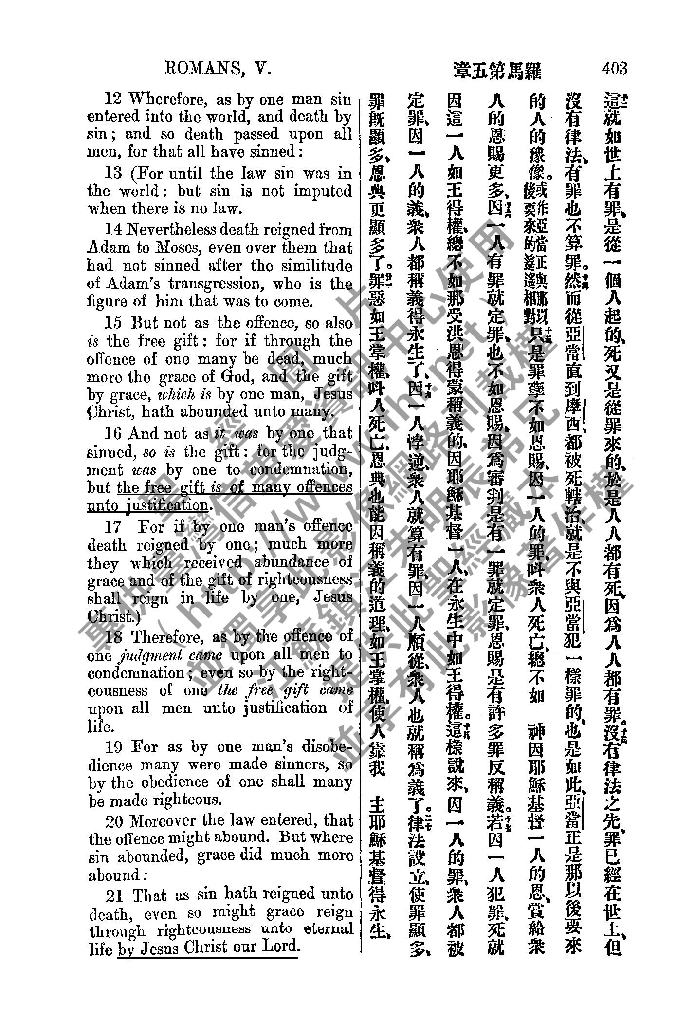 1885年新約全書 羅馬書 5 章 12 節到 5 章 21 節