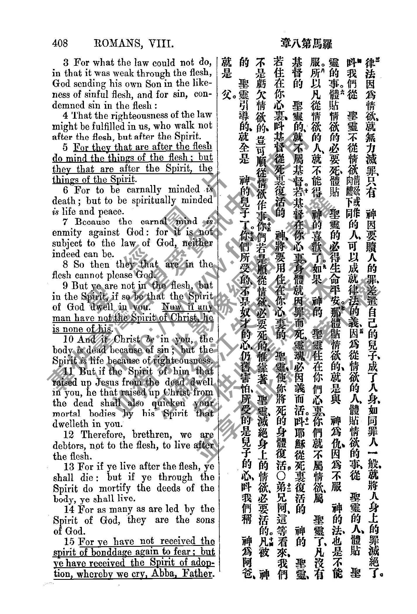 1885年新約全書 羅馬書 8 章 3 節到 8 章 15 節
