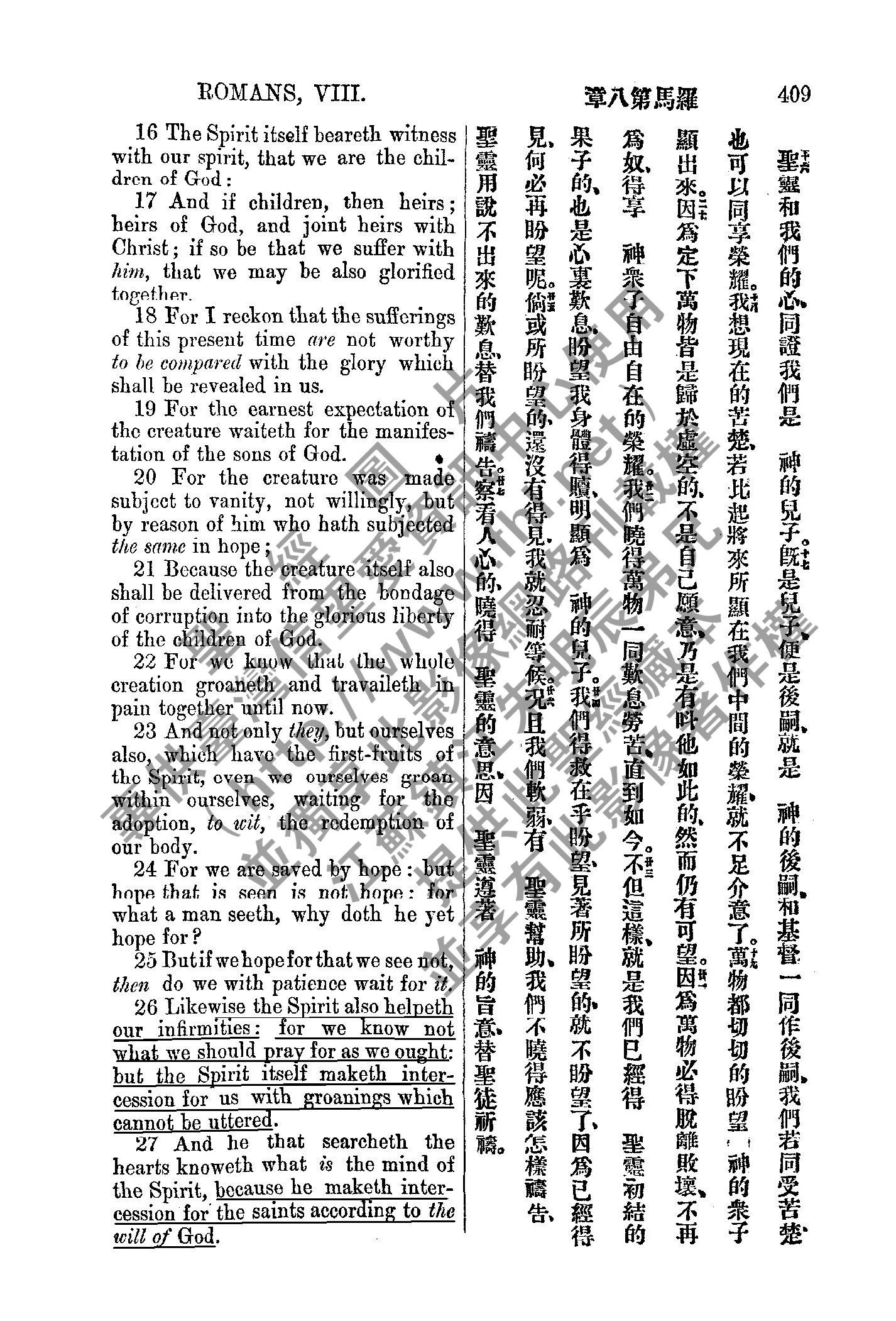 1885年新約全書 羅馬書 8 章 16 節到 8 章 27 節