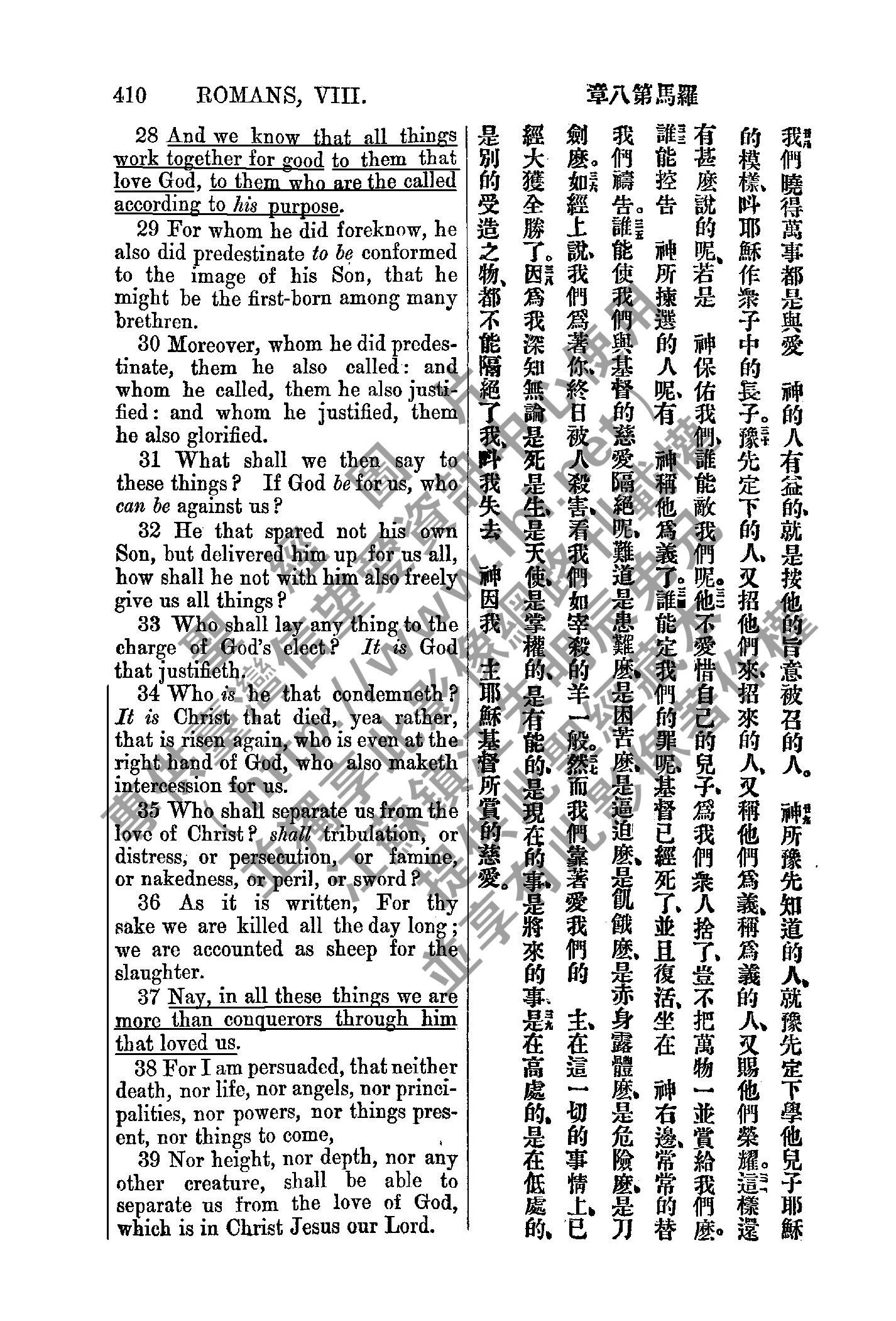 1885年新約全書 羅馬書 8 章 28 節到 8 章 39 節
