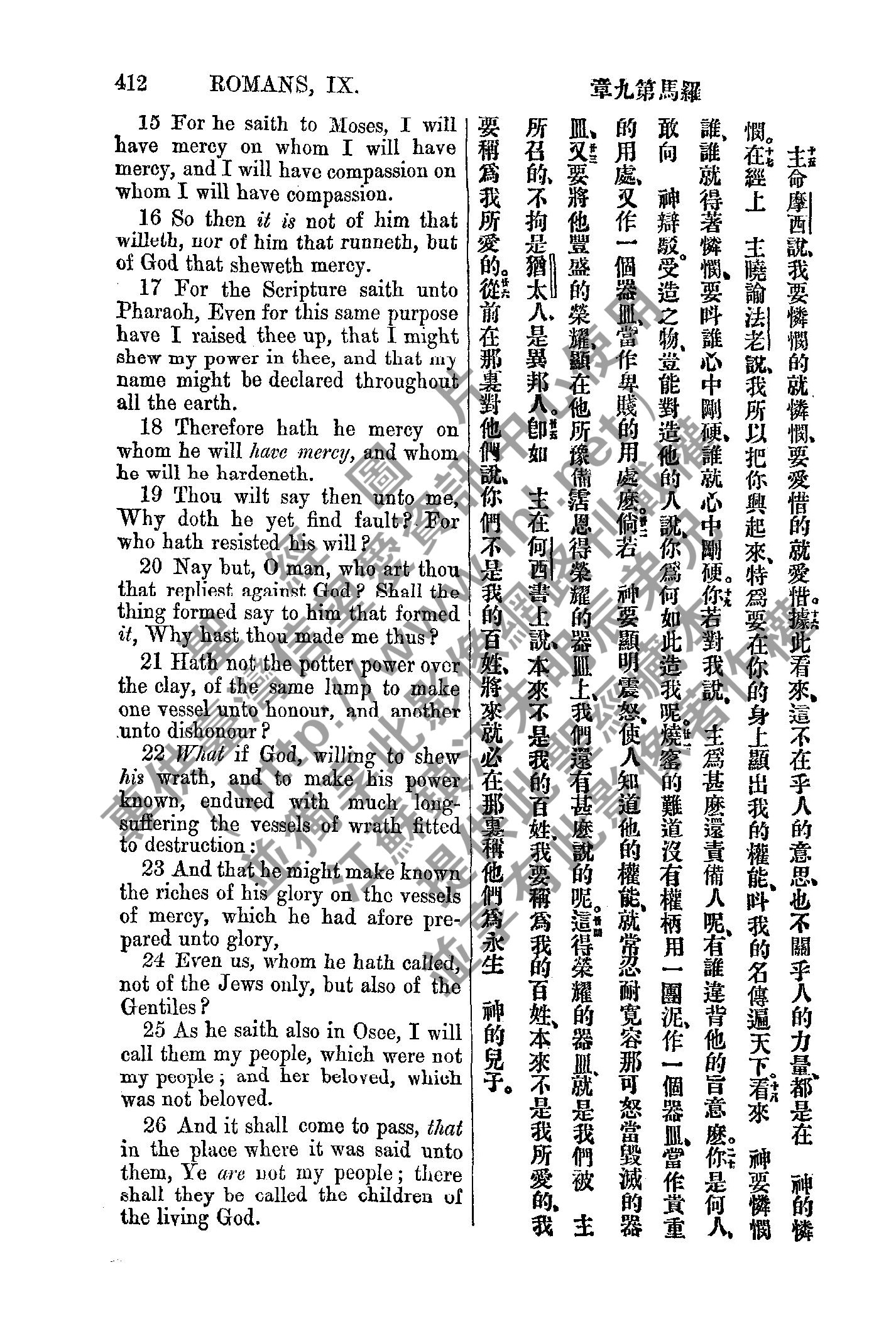 1885年新約全書 羅馬書 9 章 15 節到 9 章 26 節