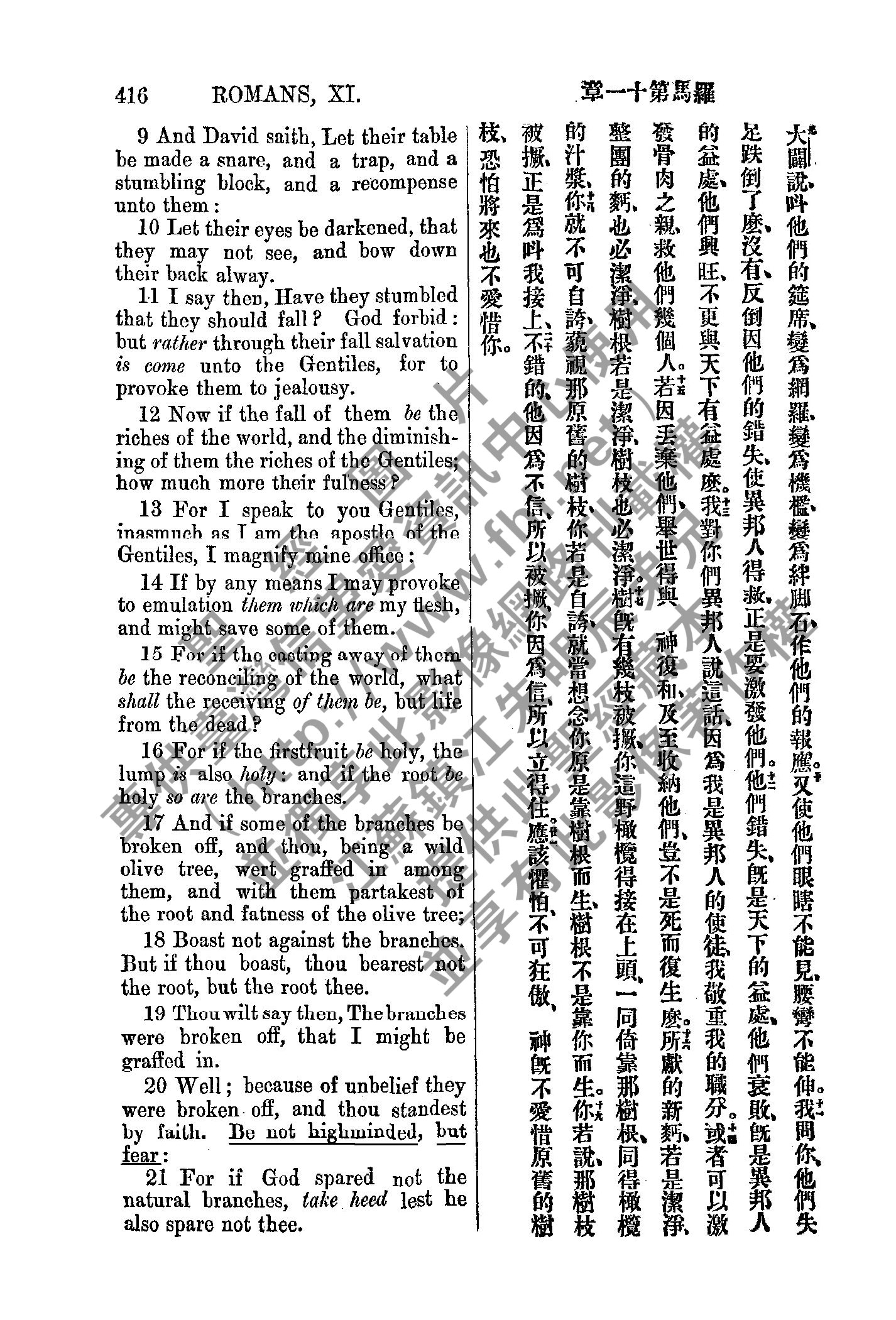 1885年新約全書 羅馬書 11 章 9 節到 11 章 21 節
