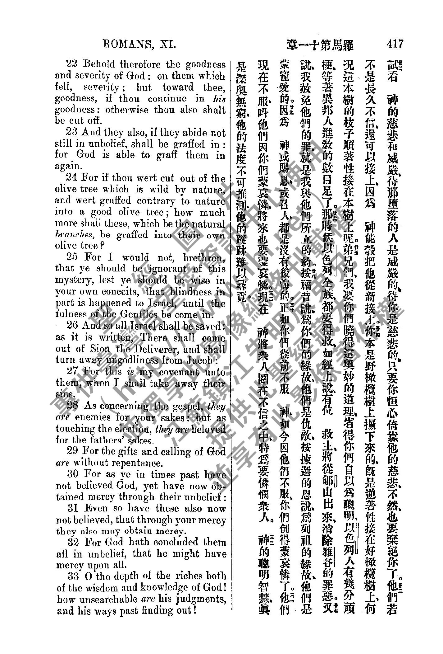 1885年新約全書 羅馬書 11 章 22 節到 11 章 33 節