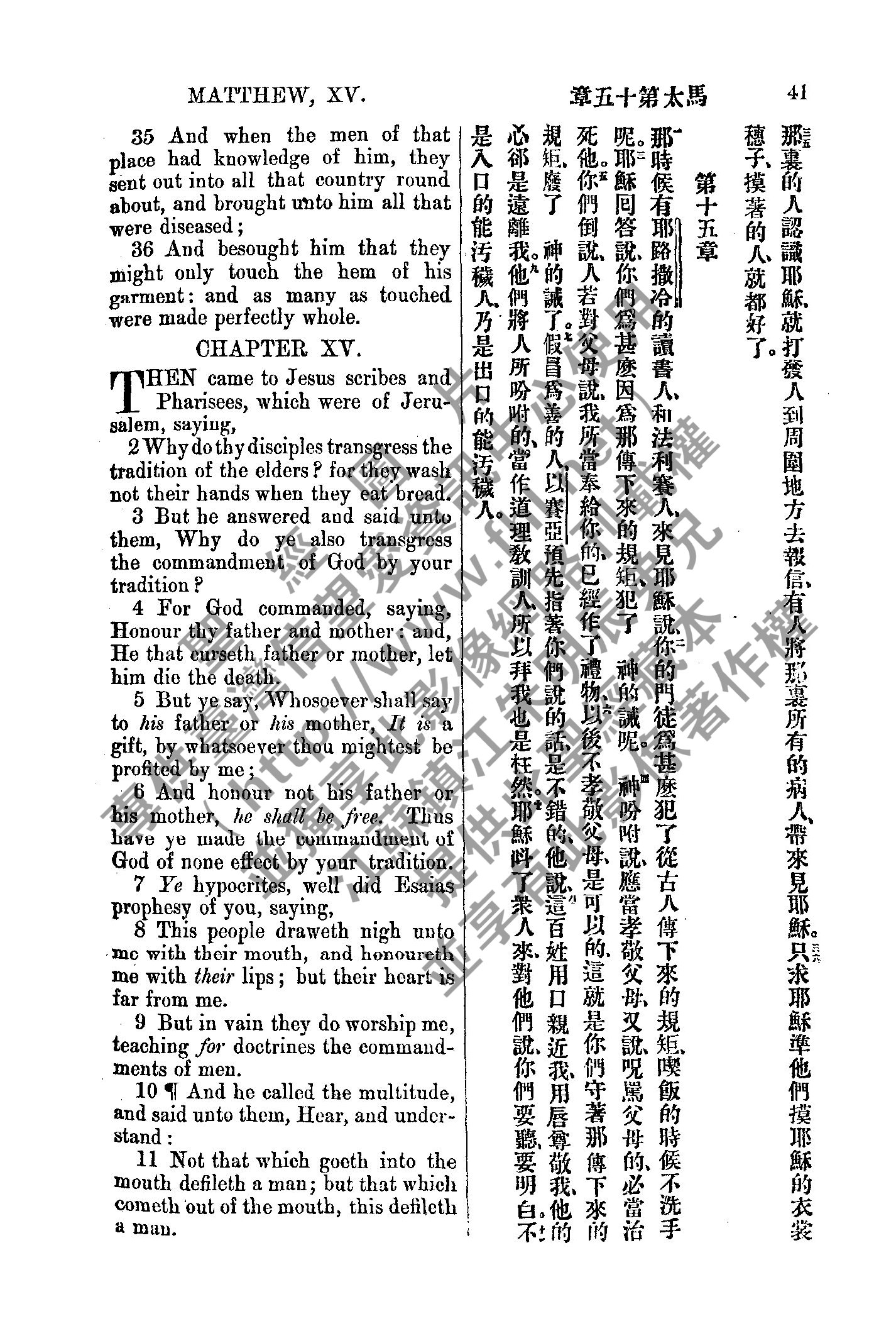1885年新約全書 馬太福音 14 章 35 節到 15 章 11 節