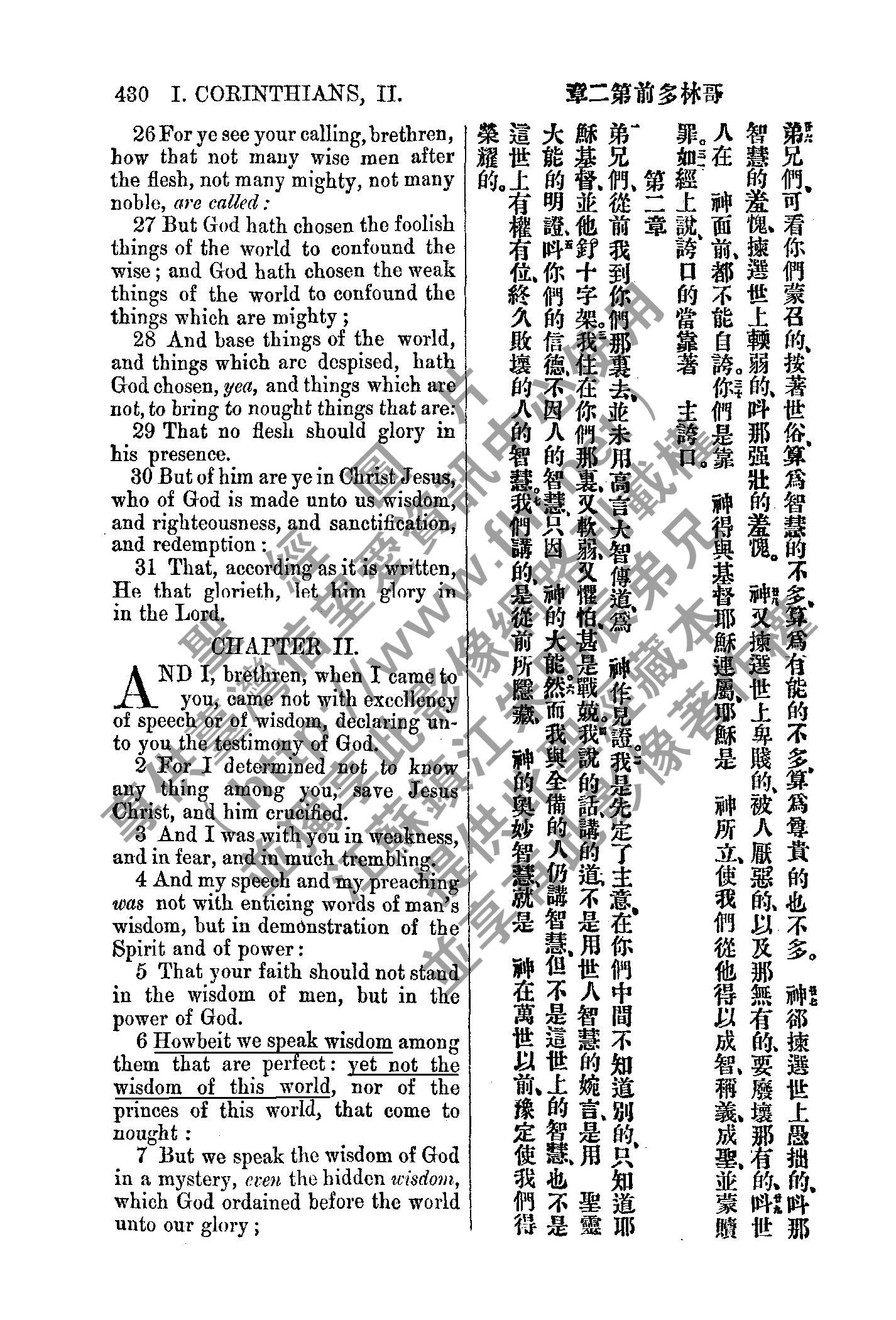 1885年新約全書 哥林多前書 1 章 26 節到 2 章 7 節