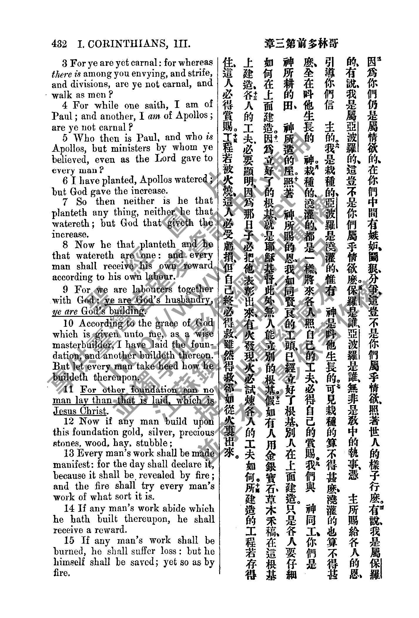 1885年新約全書 哥林多前書 3 章 3 節到 3 章 15 節