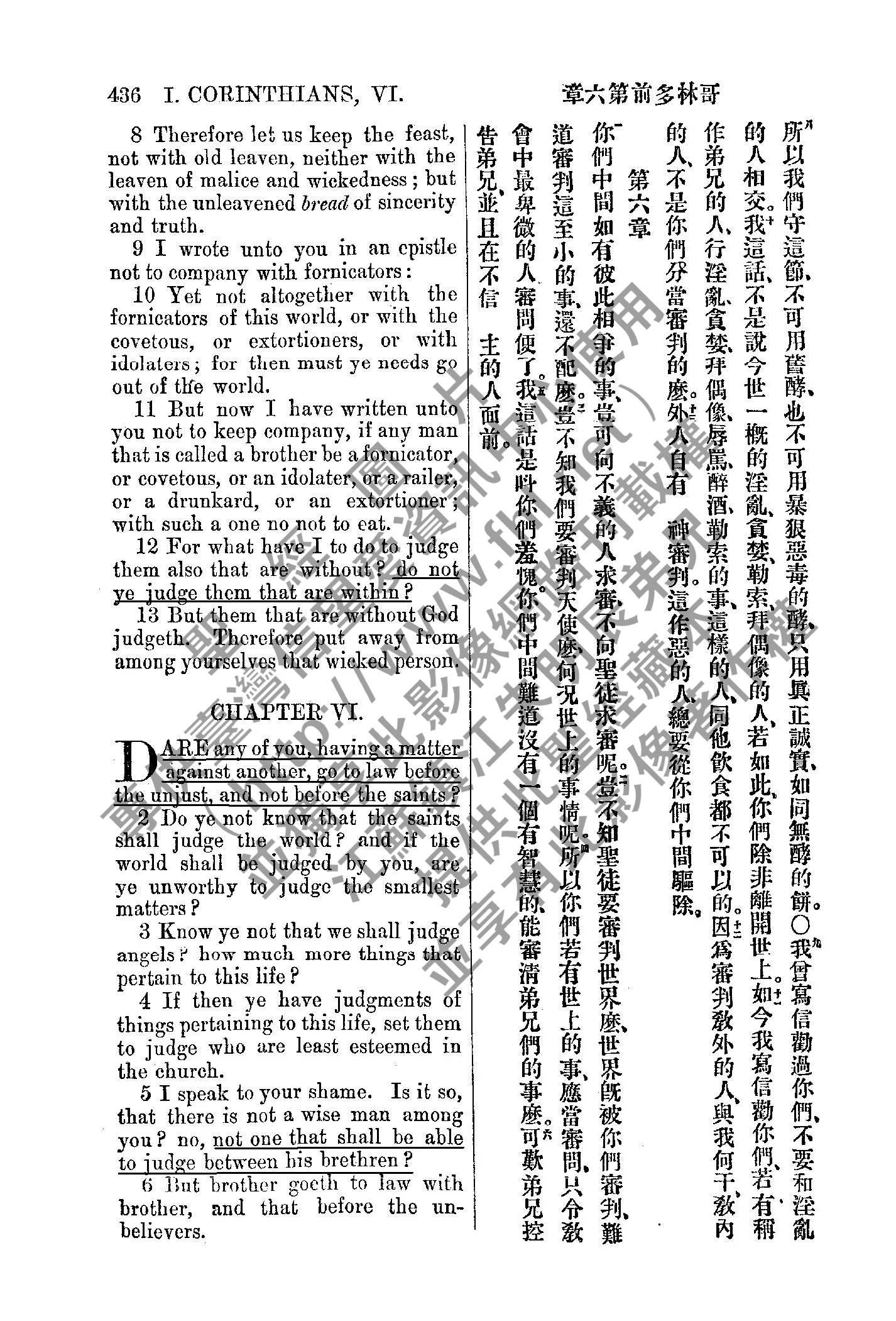 1885年新約全書 哥林多前書 5 章 7 節到 6 章 6 節