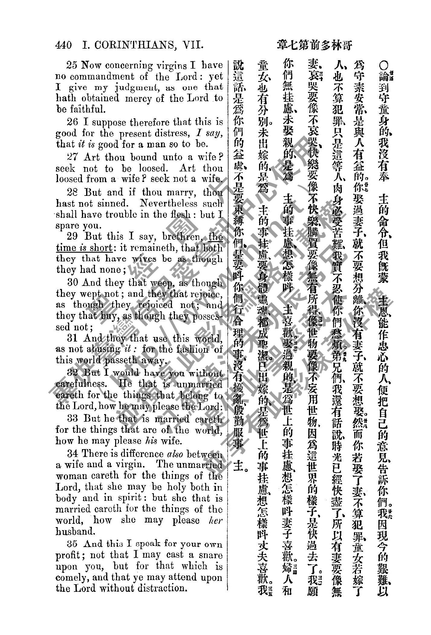 1885年新約全書 哥林多前書 7 章 25 節到 7 章 35 節