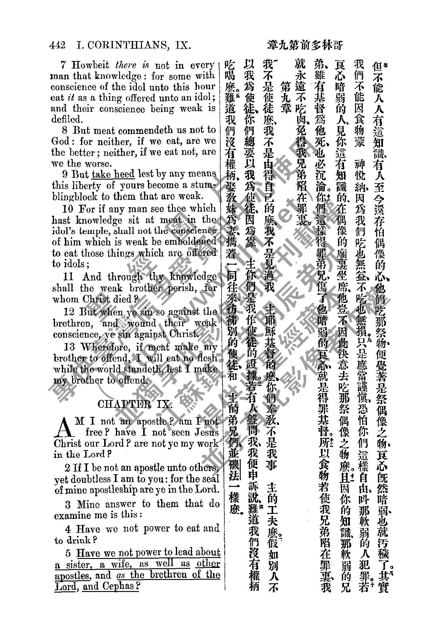 1885年新約全書 哥林多前書 8 章 7 節到 9 章 5 節