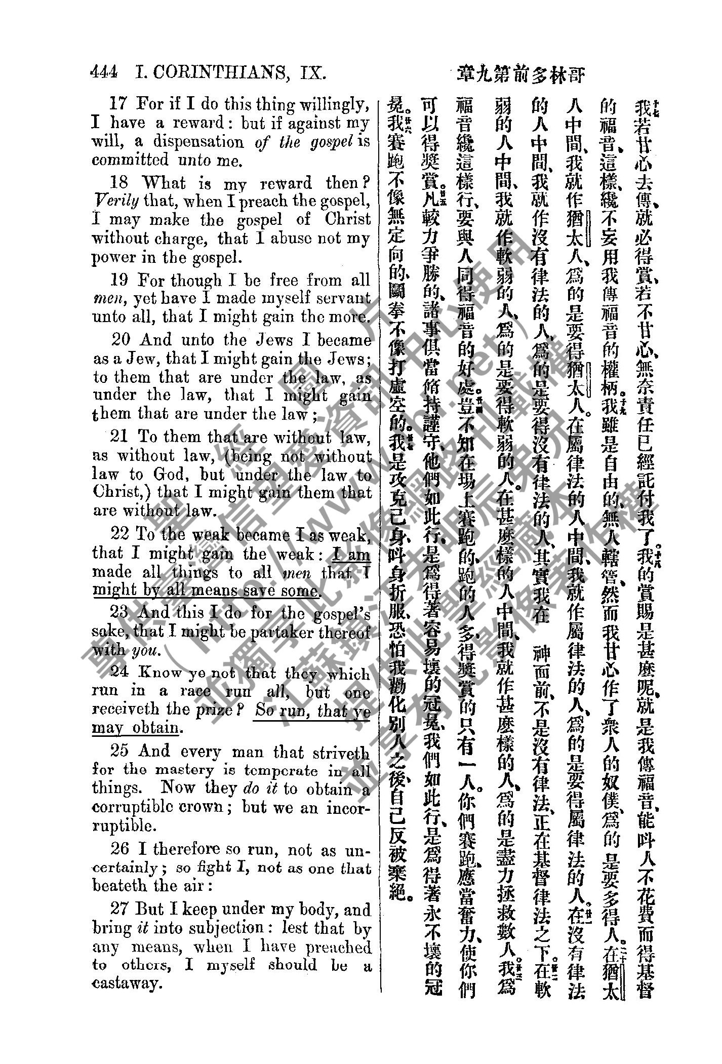 1885年新約全書 哥林多前書 9 章 17 節到 9 章 27 節
