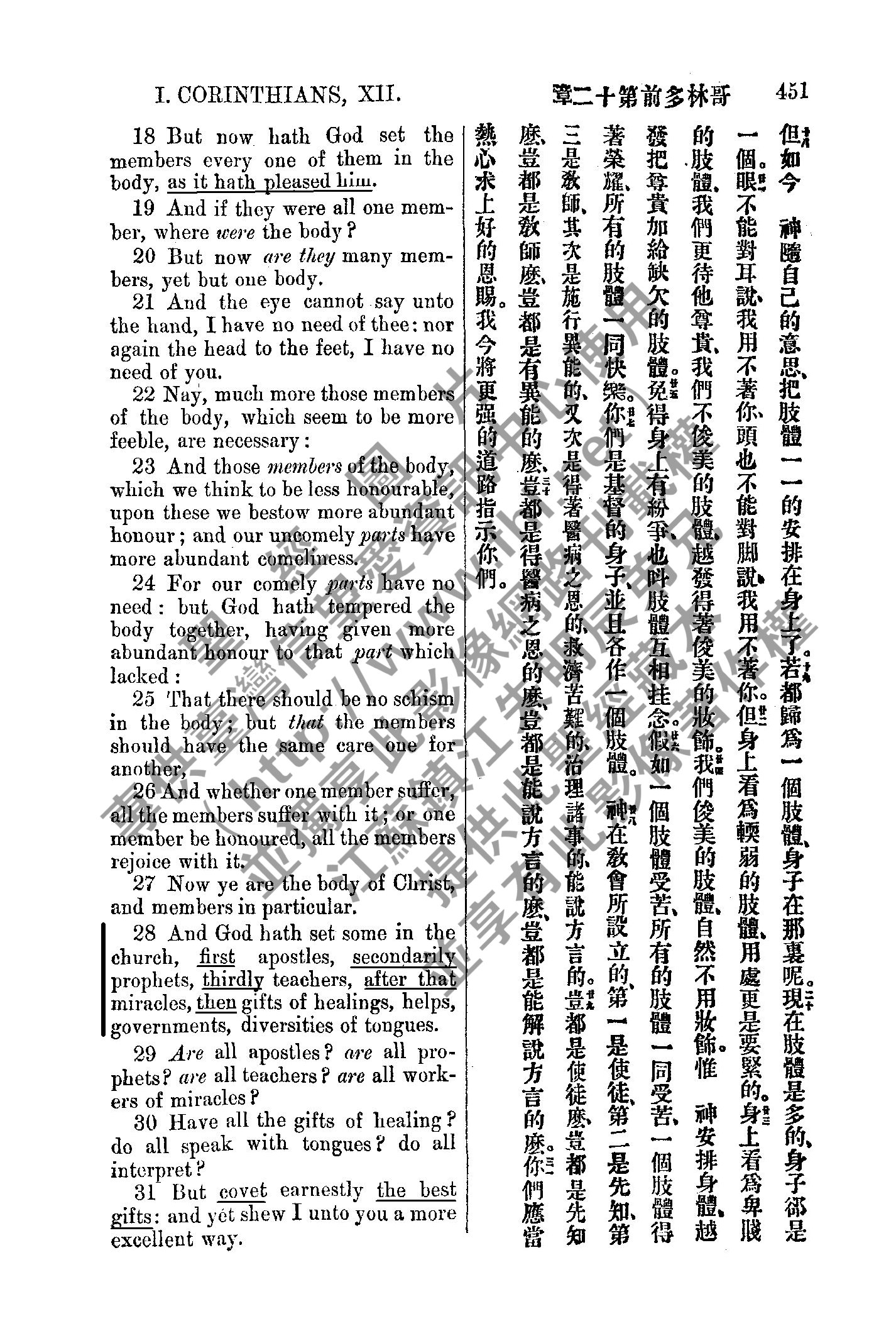 1885年新約全書 哥林多前書 12 章 18 節到 12 章 31 節