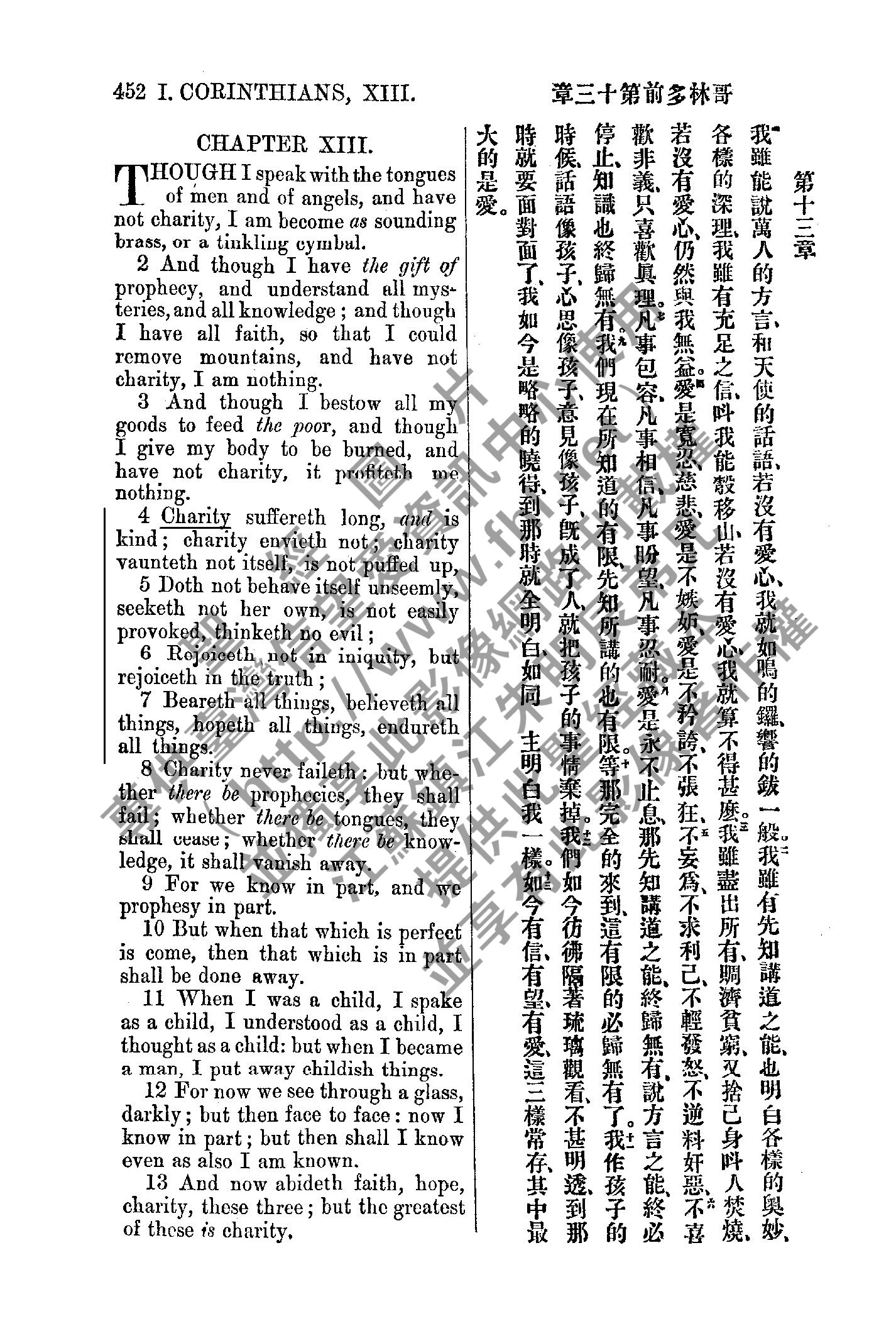1885年新約全書 哥林多前書 13 章 1 節到 13 章 13 節