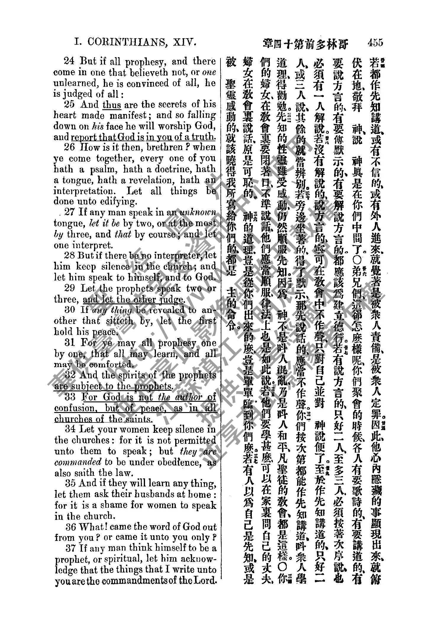 1885年新約全書 哥林多前書 14 章 24 節到 14 章 37 節