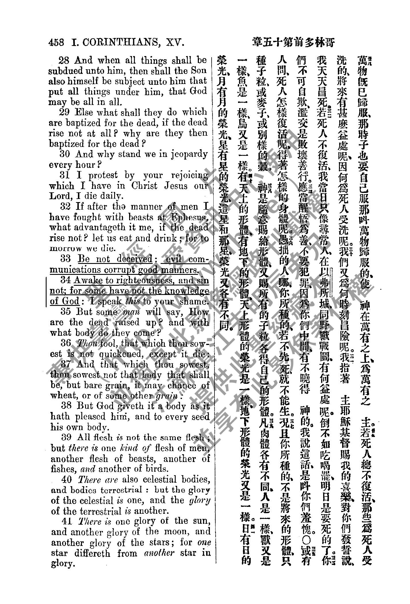 1885年新約全書 哥林多前書 15 章 28 節到 15 章 41 節