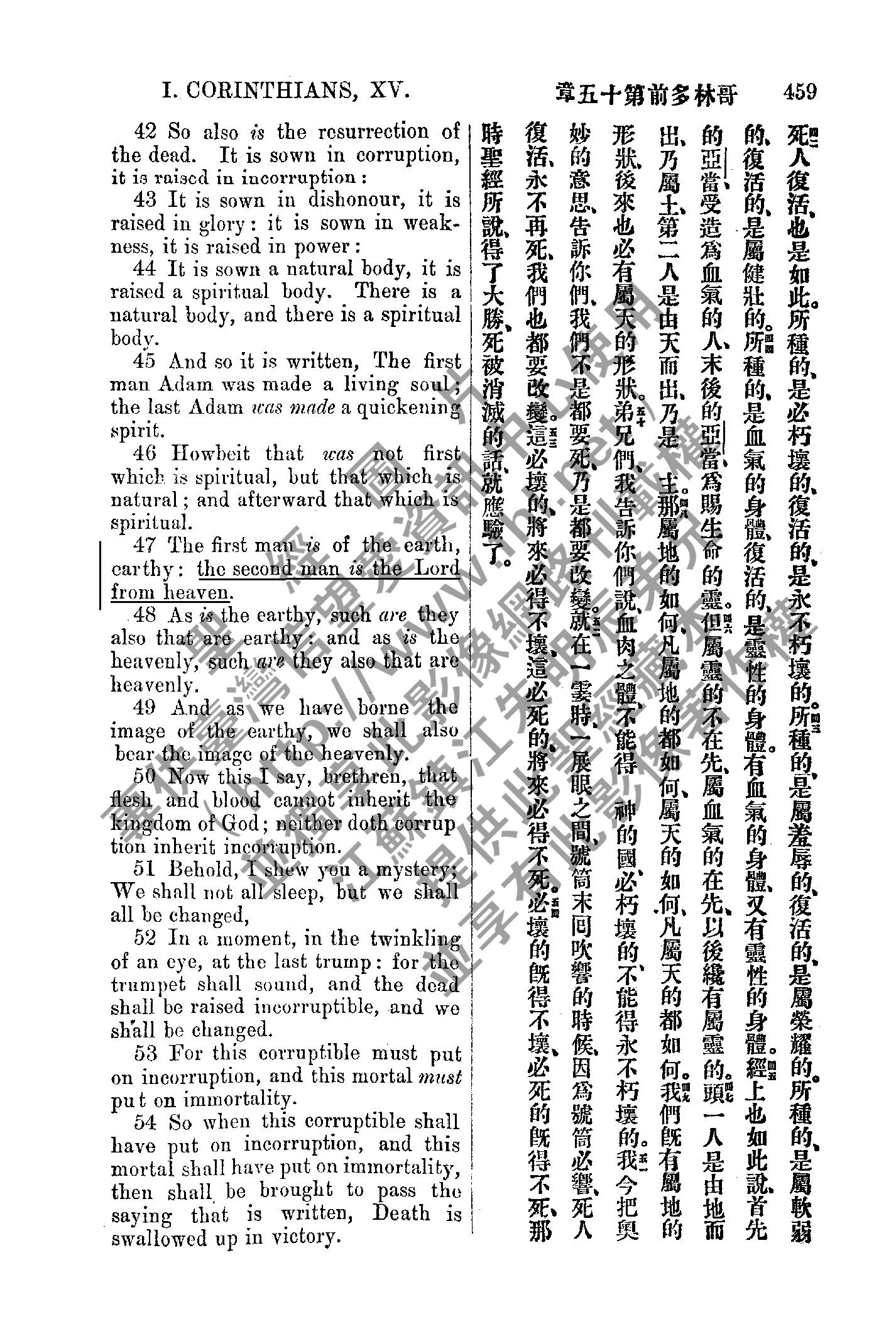 1885年新約全書 哥林多前書 15 章 42 節到 15 章 54 節