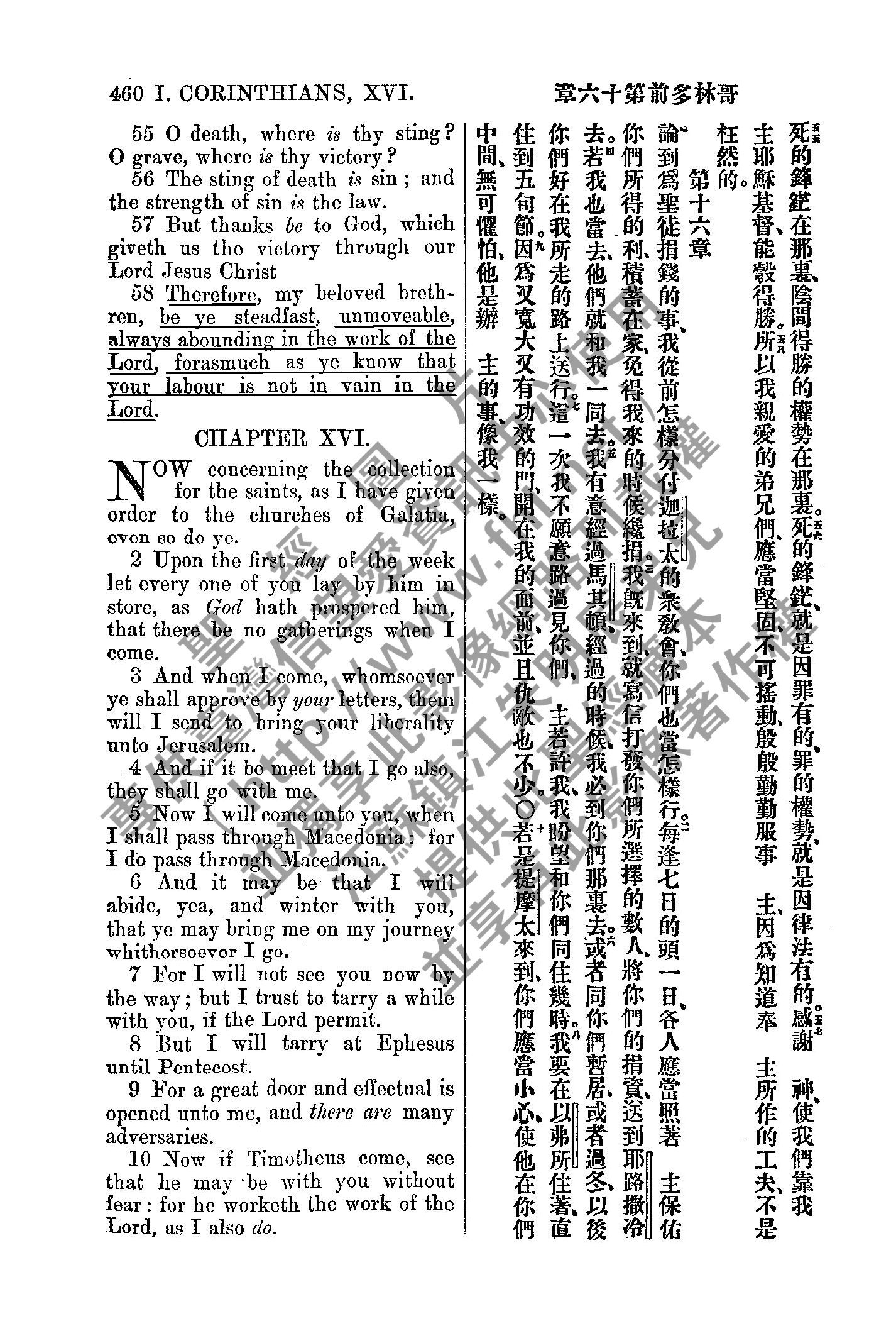 1885年新約全書 哥林多前書 15 章 55 節到 16 章 10 節