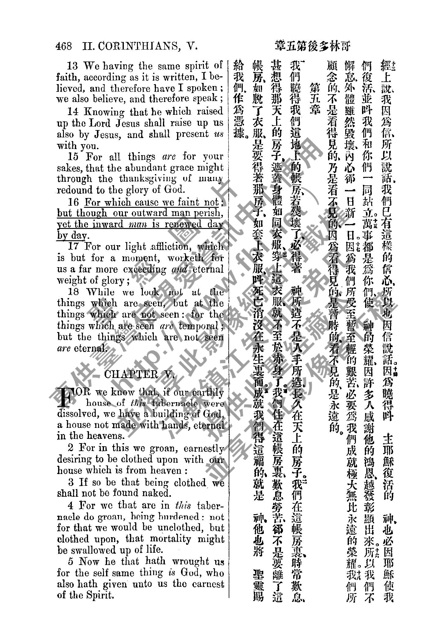 1885年新約全書 哥林多後書 4 章 13 節到 5 章 5 節