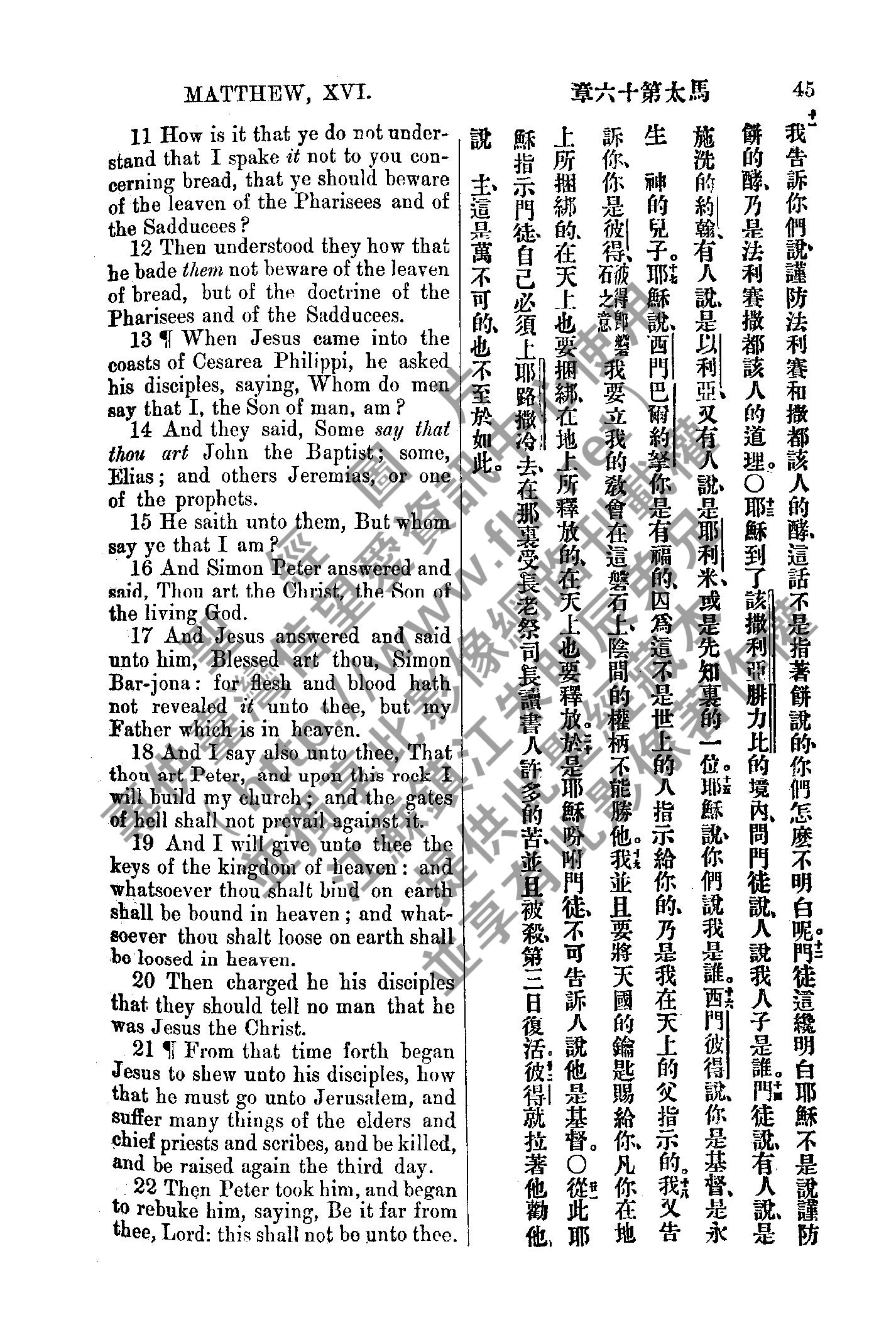 1885年新約全書 馬太福音 16 章 11 節到 16 章 22 節
