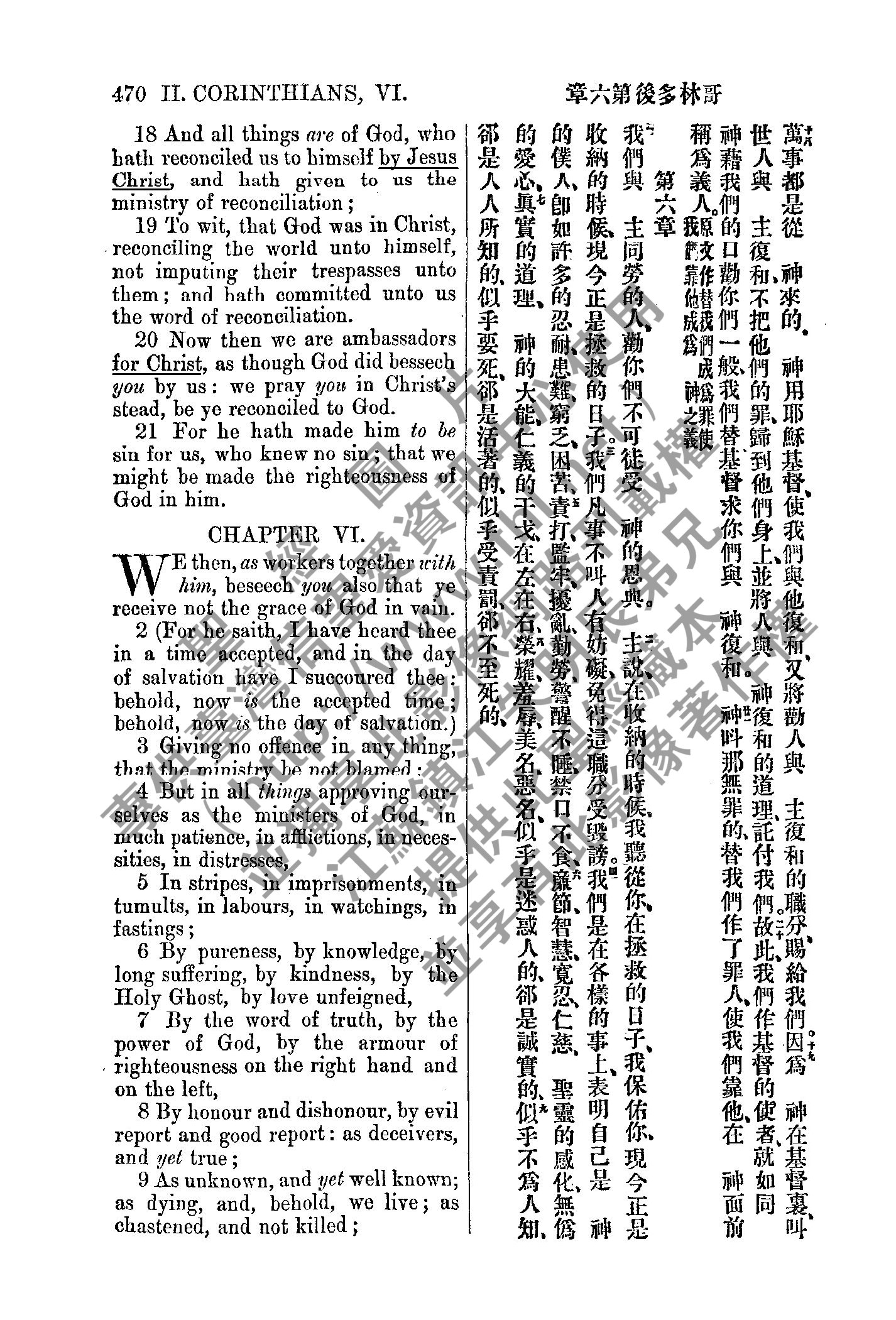 1885年新約全書 哥林多後書 5 章 18 節到 6 章 9 節