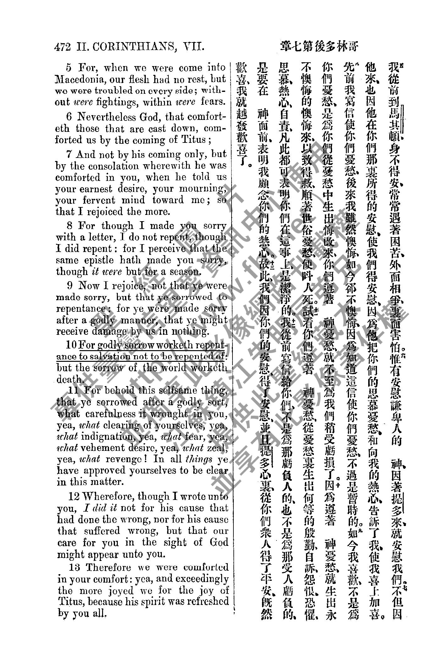 1885年新約全書 哥林多後書 7 章 5 節到 7 章 13 節